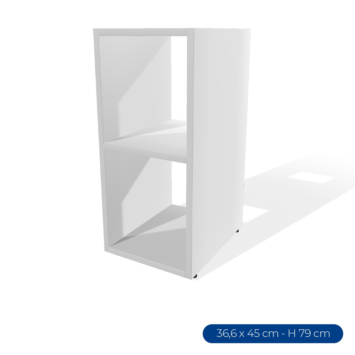 Armadiatura aperta (senza fondo) larga 36,6cm profonda 45cm , altezza con piedini regolabili 78/79cm da terra, dotata della possibilità di aggiungere altri moduli per formare una configurazione di armadiature curve e diritte. In materiale certificato FSC. Prodotto consegnato da montare.
