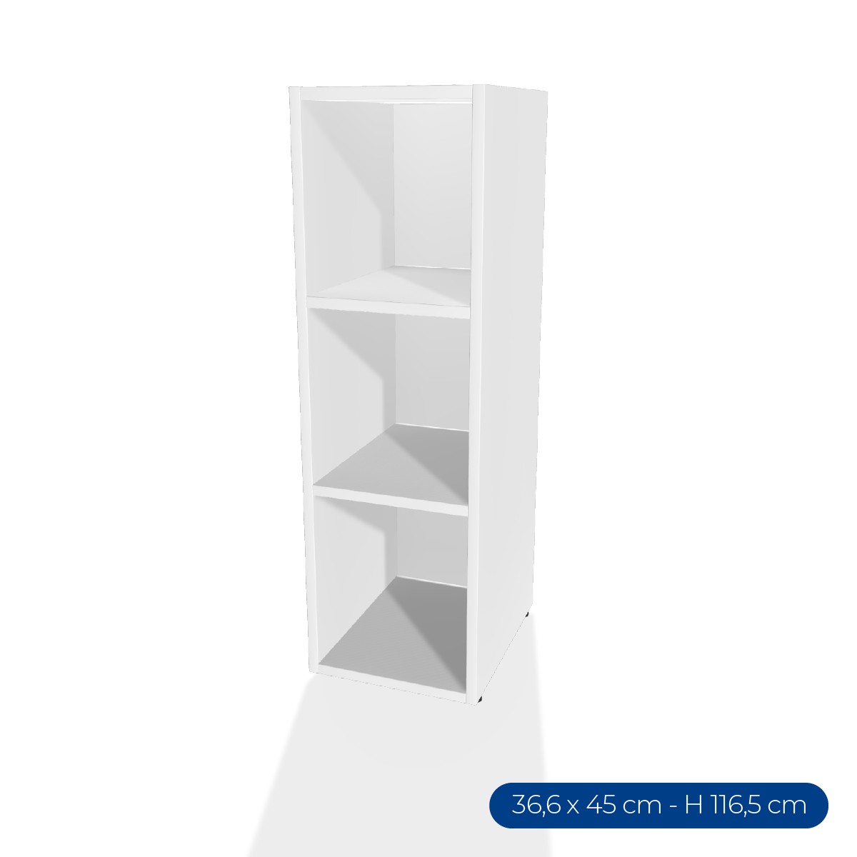Armadiatura chiusa (con fondo) larga 36,6cm profonda 45cm , altezza con piedini regolabili 115,5/116,5cm da terra, dotata della possibilità di aggiungere altri moduli per formare una configurazione di armadiature curve e diritte. In materiale certificato FSC. Prodotto consegnato da montare.