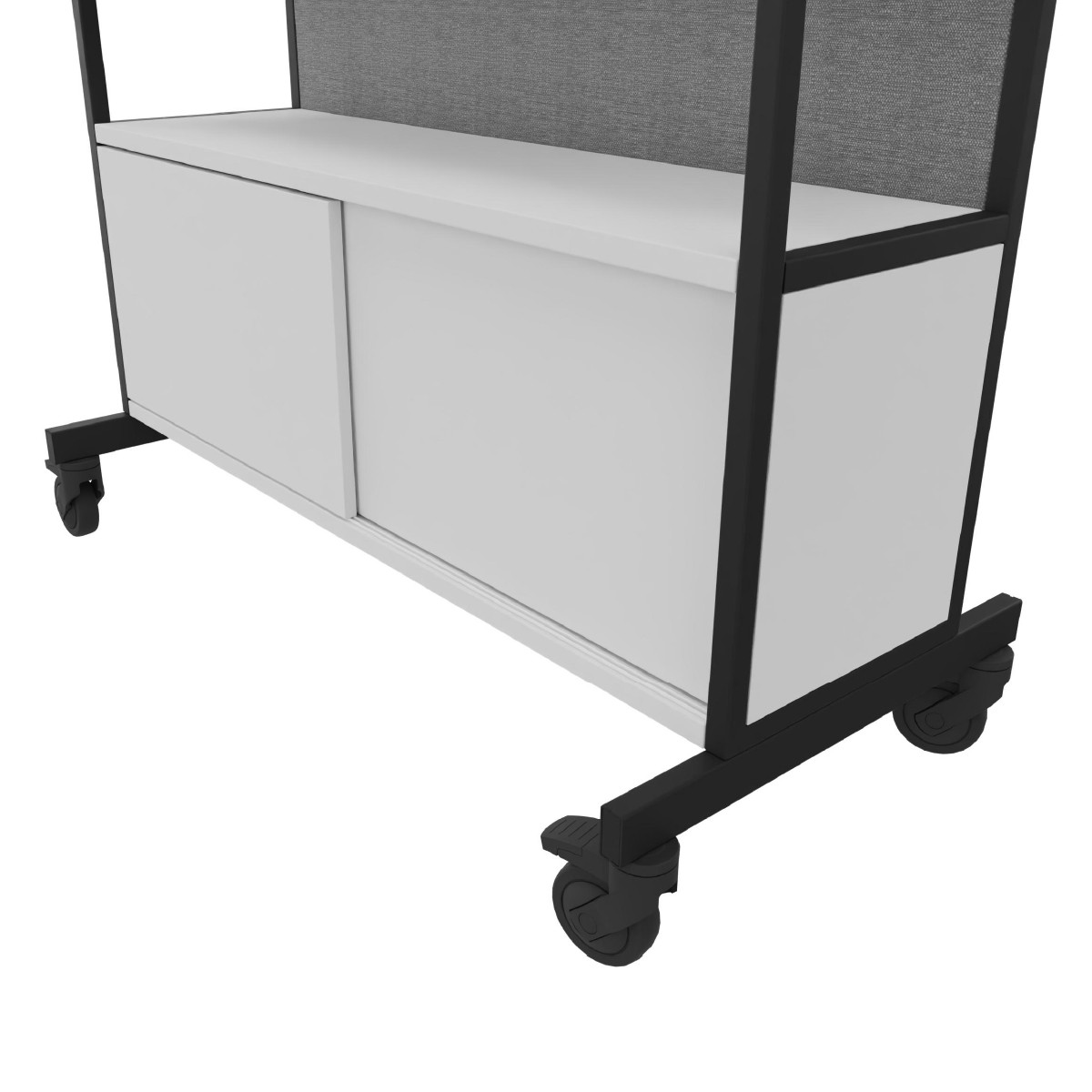 Libreria Worklab su Ruote - Modello con 2 Mensole e Schiena Scrivibile - Colore Struttura Nero/Grigio - Colore Ripiani Bianco