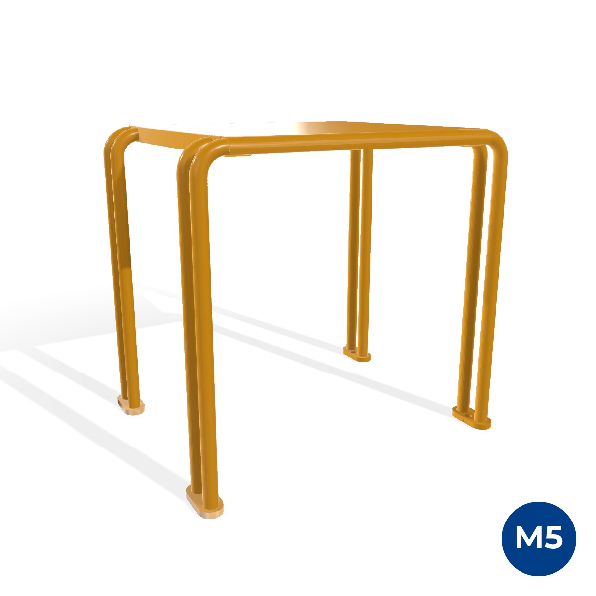Sedia/Panca da interno. Dimensioni: 45x36cm, altezza 42cm. Materiale: metallo verniciato, colore giallo, uso prevalente in ambienti all'interno di edifici. Il prodotto è impilabile. Prodotto consegnato montato.