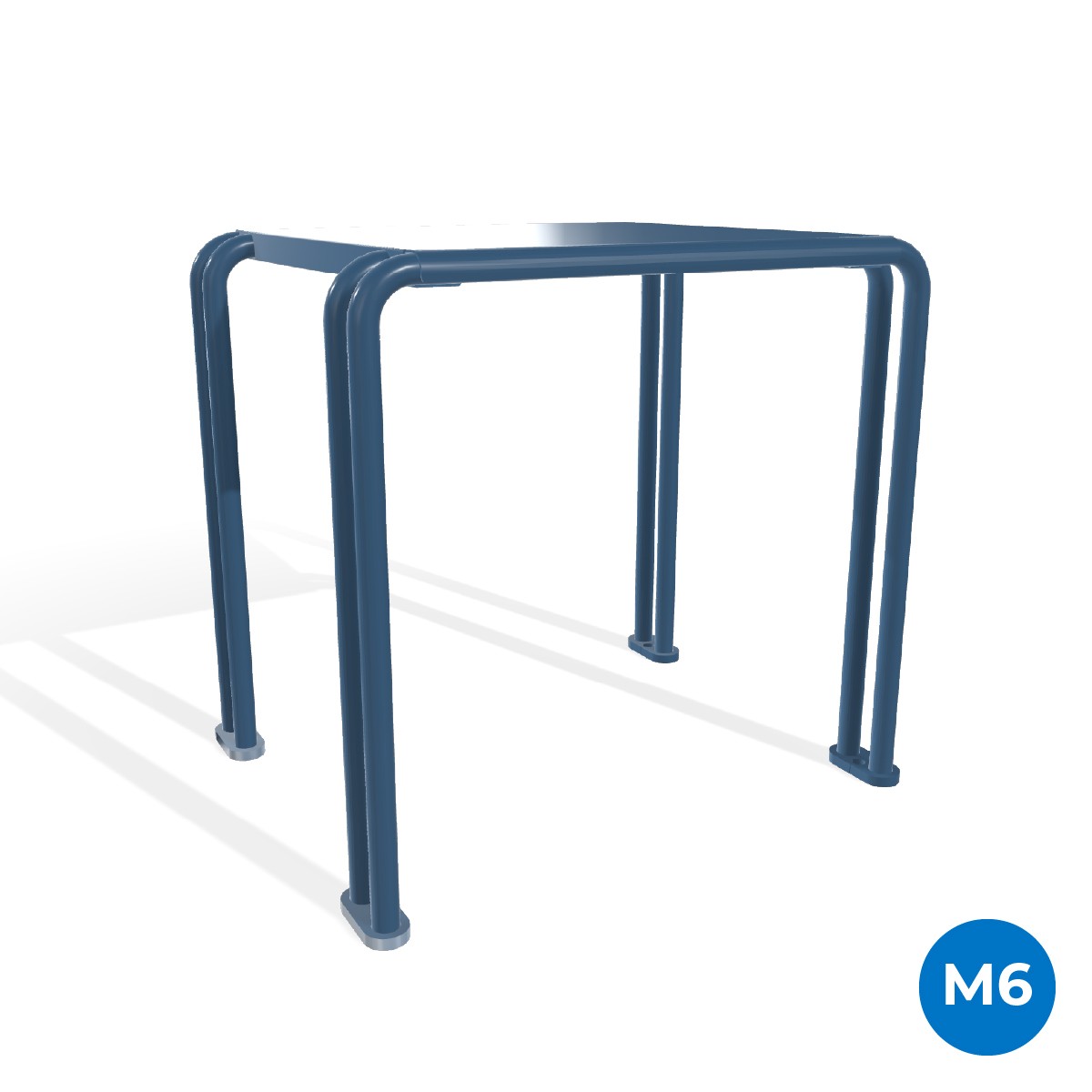 Sedia/Panca da interno. Dimensioni: 49x40cm, altezza 47cm. Materiale: metallo verniciato, colore azzurro, uso prevalente in ambienti all'interno di edifici. Il prodotto è impilabile. Prodotto consegnato montato.