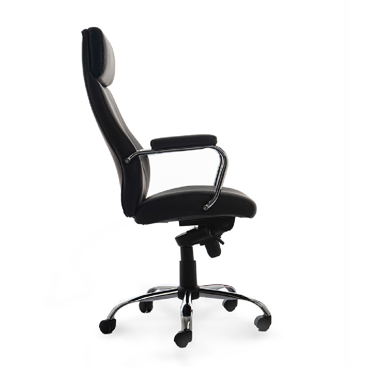 Poltrona direzionale girevole Modello 986V22 in similpelle con base in metallo cromato e meccanismi sincronizzati. Sedile e schienale confortevoli, poggiatesta integrato e braccioli imbottiti. Facile da montare e ideale per uno stile moderno ed elegante.