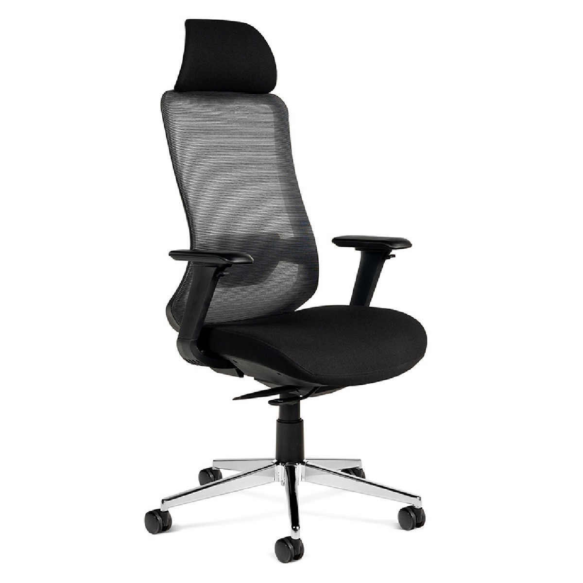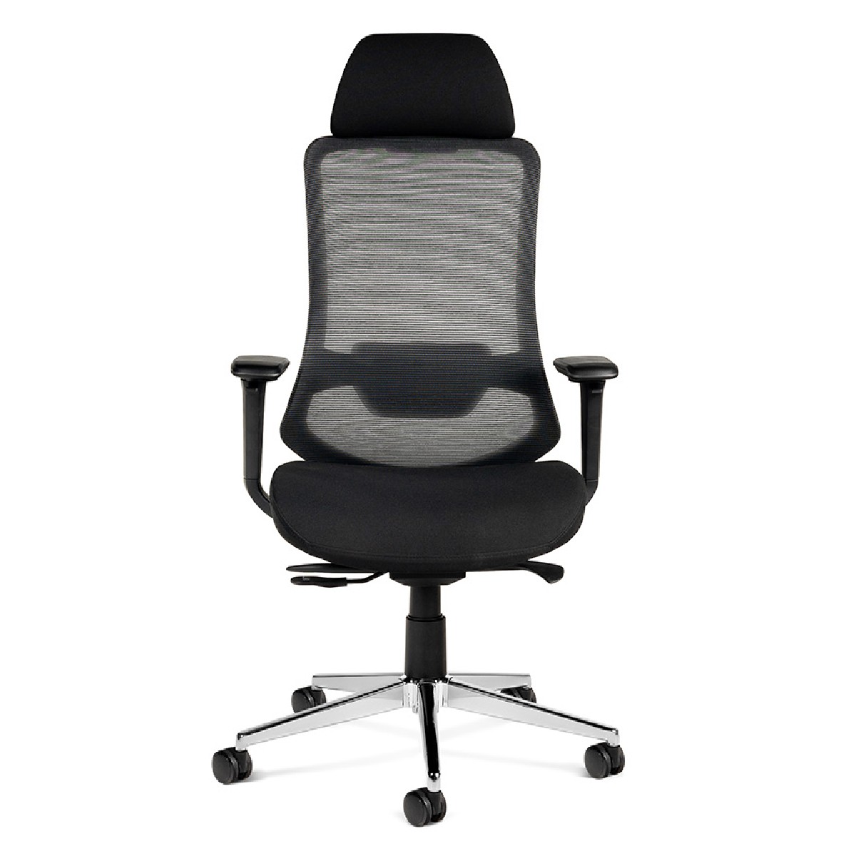 Sedia da ufficio professionale, per uso 24h. Rivestimento in tessuto ignifugo con interno in schiumato iniettato per il sedile e con schienale rivestito in rete nera su struttura iniettata in polimero tecnico. Presenta una base metallica e un robusto meccanismo sincronizzato. Regolazione lombare e sedile con profondità regolazione.Braccioli regolabili 4D e poggiatesta inclusi. Ruote ad alte prestazioni per un uso intensivo. Facile da montare.