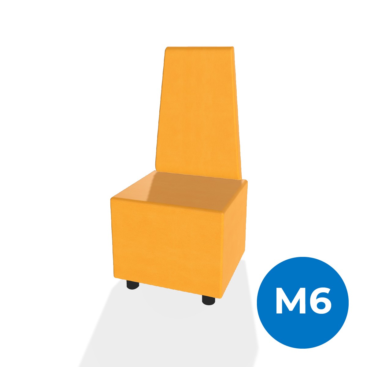 Pouf componibile di forma rettangolo stretto altezza M6 e schienale alto. Dimensioni: 48x51,5xH45,5cm, piedini alla base da 6cm, altezza da terra 109,5cm. Compatibile per sistema di aggancio unione elementi. Materiale: rivestimento sfoderabile, similpelle ignifuga classe 1 colore arancione, struttura in legno, imbottitura in gomma. La caratteristica chiave di questa linea è la modularità assoluta. E’ possibile infatti creare illimitate combinazioni abbinando le diverse forme, al fine di dividere gli ambienti e arricchire gli spazi comuni. Prodotto pensato per gli spazi comuni quali atrii, corridoi ed altre aree di passaggio.