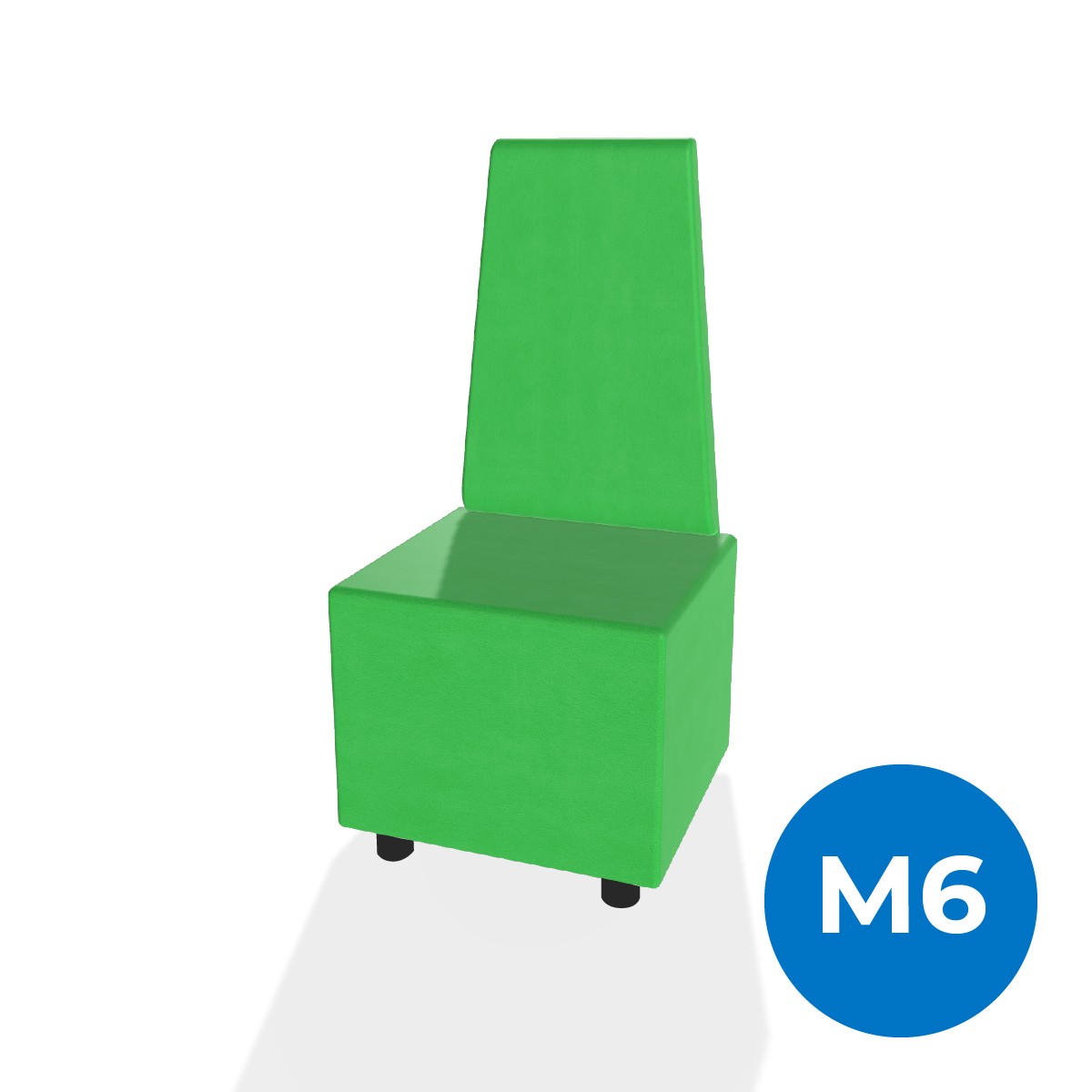 Pouf componibile di forma rettangolo stretto altezza M6 e schienale alto. Dimensioni: 48x51,5xH45,5cm, piedini alla base da 6cm, altezza da terra 109,5cm. Compatibile per sistema di aggancio unione elementi. Materiale: rivestimento sfoderabile, similpelle ignifuga classe 1 colore verde, struttura in legno, imbottitura in gomma. La caratteristica chiave di questa linea è la modularità assoluta. E’ possibile infatti creare illimitate combinazioni abbinando le diverse forme, al fine di dividere gli ambienti e arricchire gli spazi comuni. Prodotto pensato per gli spazi comuni quali atrii, corridoi ed altre aree di passaggio.