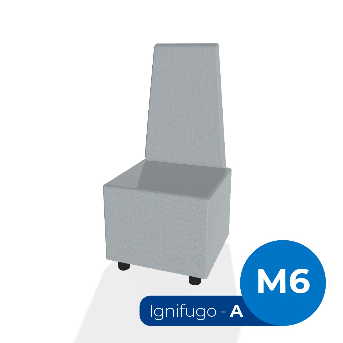 Pouf componibile di forma rettangolo stretto altezza M6 e schienale alto. Dimensioni: 48x51,5xH45,5cm, piedini alla base da 6cm, altezza schienale 109,5cm. Compatibile per sistema di aggancio unione elementi. Materiale: rivestimento sfoderabile, tessuto ignifugo colore di tipo "A" grigio, struttura in legno, imbottitura in gomma. La caratteristica chiave di questa linea è la modularità assoluta. E’ possibile infatti creare illimitate combinazioni abbinando le diverse forme, al fine di dividere gli ambienti e arricchire gli spazi comuni. Prodotto pensato per gli spazi comuni quali atrii, corridoi ed altre aree di passaggio. Prodotto consegnato montato. (Richiede l'acquisto di altri Pouf e sistema di aggancio)