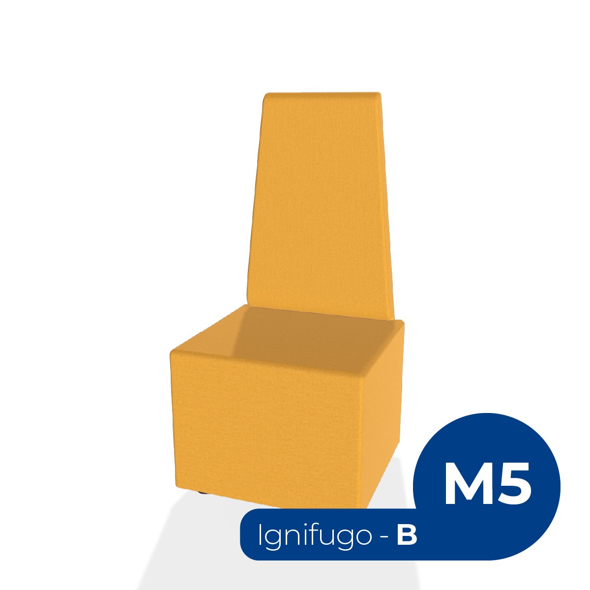 Pouf componibile di forma rettangolo stretto altezza M5 e schienale alto. Dimensioni: 48x51,5xH42cm, piedini alla base da 2,5 cm, altezza da terra 106cm. Compatibile per sistema di aggancio unione elementi. Materiale: rivestimento, sfoderabile, tessuto ignifugo colore di tipo "B" giallo scuro, struttura in legno, imbottitura in gomma. La caratteristica chiave di questa linea è la modularità assoluta. E’ possibile infatti creare illimitate combinazioni abbinando le diverse forme, al fine di dividere gli ambienti e arricchire gli spazi comuni. Prodotto pensato per gli spazi comuni quali atrii, corridoi ed altre aree di passaggio. Prodotto consegnato montato. (Richiede l'acquisto di altri Pouf e sistema di aggancio)
