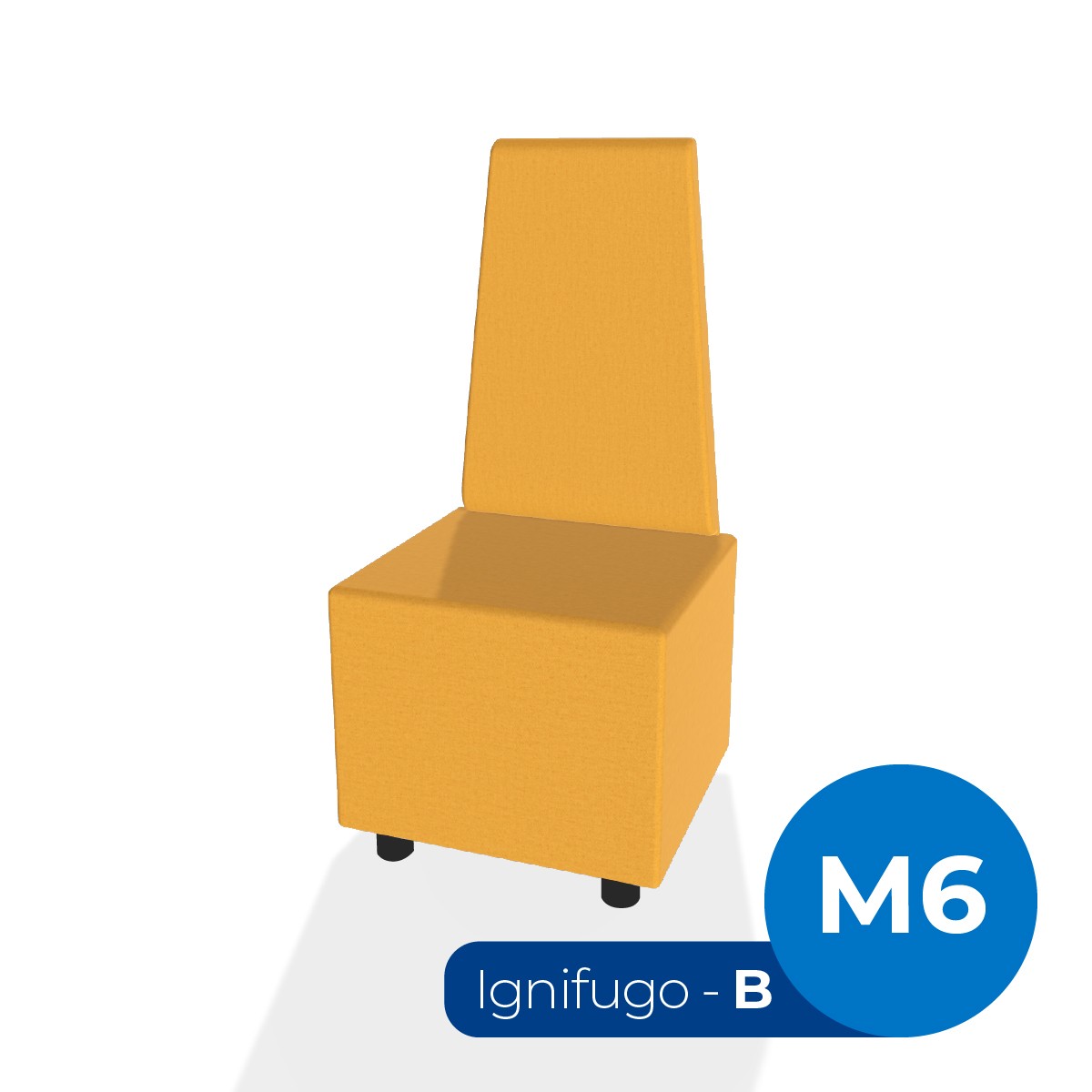 Pouf componibile di forma rettangolo stretto altezza M6 e schienale alto. Dimensioni: 48x51,5xH45,5cm, piedini alla base da 6cm, altezza schienale 109,5cm. Compatibile per sistema di aggancio unione elementi. Materiale: rivestimento sfoderabile, tessuto ignifugo colore di tipo "B" giallo scuro, struttura in legno, imbottitura in gomma. La caratteristica chiave di questa linea è la modularità assoluta. E’ possibile infatti creare illimitate combinazioni abbinando le diverse forme, al fine di dividere gli ambienti e arricchire gli spazi comuni. Prodotto pensato per gli spazi comuni quali atrii, corridoi ed altre aree di passaggio. Prodotto consegnato montato. (Richiede l'acquisto di altri Pouf e sistema di aggancio)
