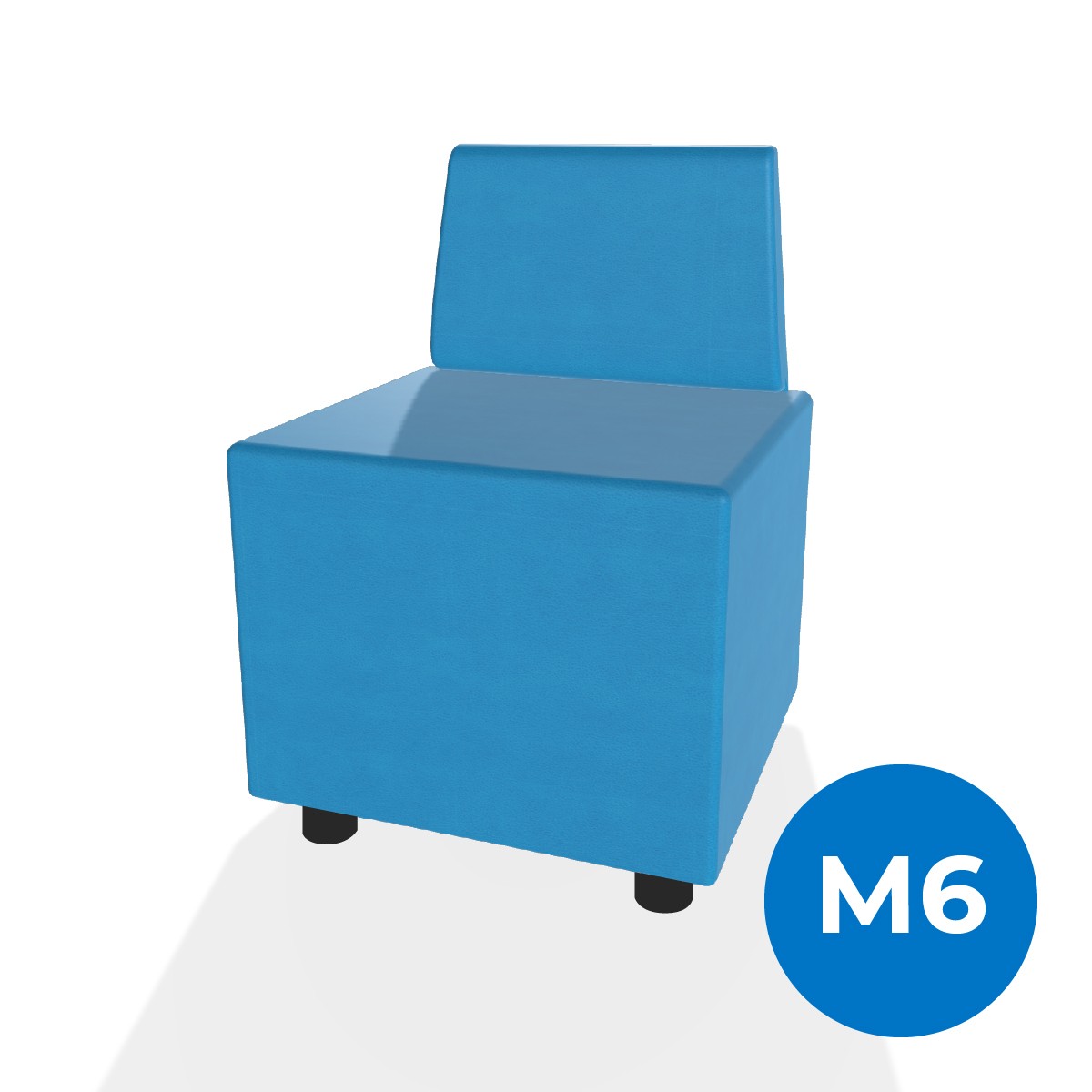 Pouf componibile di forma rettangolo stretto altezza M6 e schienale basso. Dimensioni: 48x51,5xH45,5cm, piedini alla base da 6cm, altezza schienale 74cm. Compatibile per sistema di aggancio unione elementi. Materiale: rivestimento sfoderabile, similpelle ignifuga classe 1 colore azzurro, struttura in legno, imbottitura in gomma. La caratteristica chiave di questa linea è la modularità assoluta. E’ possibile infatti creare illimitate combinazioni abbinando le diverse forme, al fine di dividere gli ambienti e arricchire gli spazi comuni. Prodotto pensato per gli spazi comuni quali atrii, corridoi ed altre aree di passaggio.