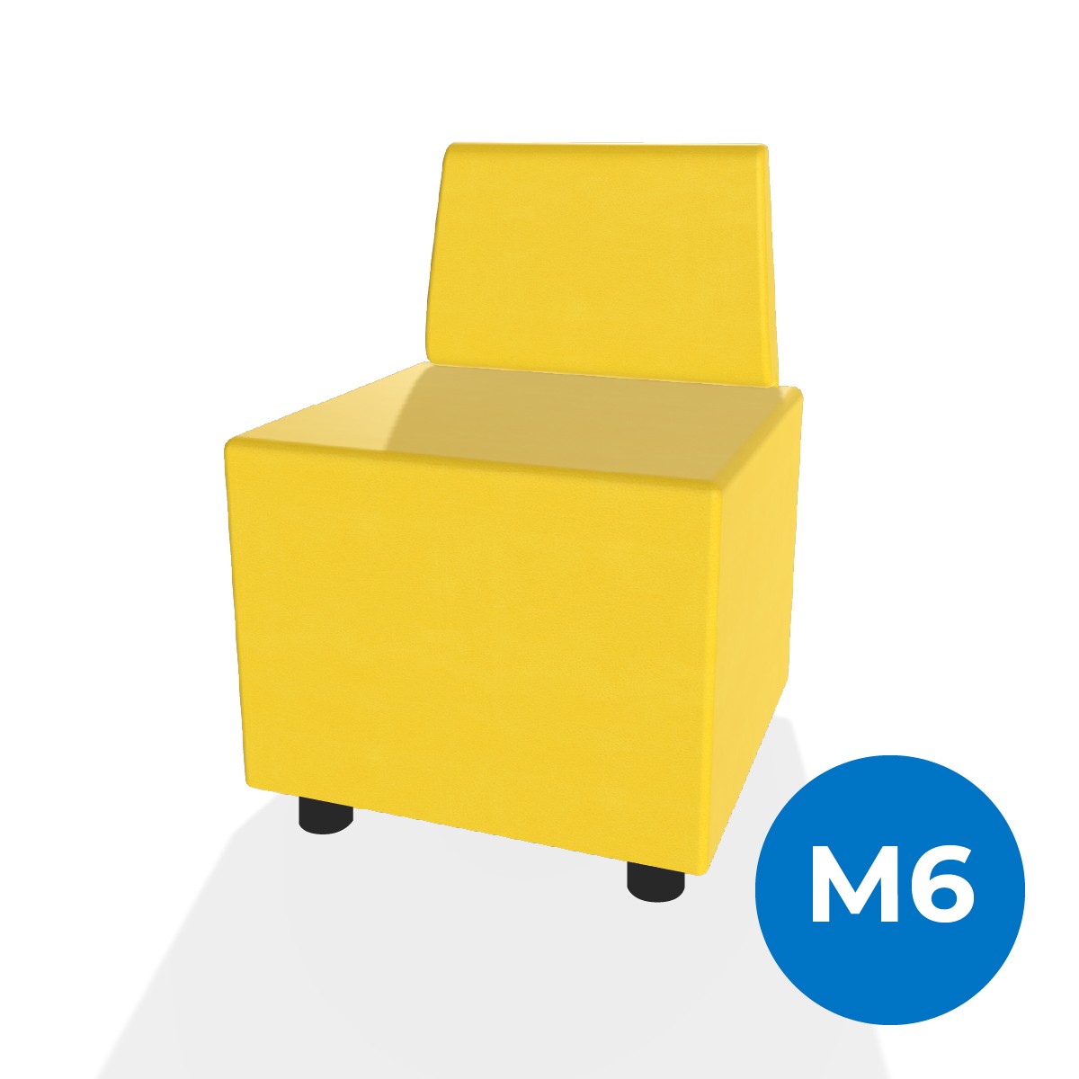 Pouf componibile di forma rettangolo stretto altezza M6 e schienale basso. Dimensioni: 48x51,5xH45,5cm, piedini alla base da 6cm, altezza schienale 74cm. Compatibile per sistema di aggancio unione elementi. Materiale: rivestimento sfoderabile, similpelle ignifuga classe 1 colore giallo, struttura in legno, imbottitura in gomma. La caratteristica chiave di questa linea è la modularità assoluta. E’ possibile infatti creare illimitate combinazioni abbinando le diverse forme, al fine di dividere gli ambienti e arricchire gli spazi comuni. Prodotto pensato per gli spazi comuni quali atrii, corridoi ed altre aree di passaggio.