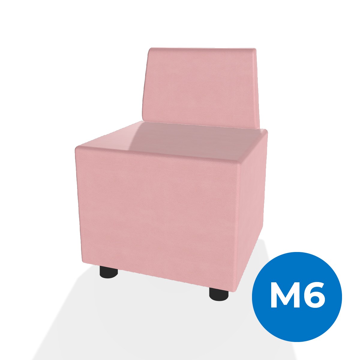 Pouf componibile di forma rettangolo stretto altezza M6 e schienale basso. Dimensioni: 48x51,5xH45,5cm, piedini alla base da 6cm, altezza schienale 74cm. Compatibile per sistema di aggancio unione elementi. Materiale: rivestimento sfoderabile, similpelle ignifuga classe 1 colore rosa, struttura in legno, imbottitura in gomma. La caratteristica chiave di questa linea è la modularità assoluta. E’ possibile infatti creare illimitate combinazioni abbinando le diverse forme, al fine di dividere gli ambienti e arricchire gli spazi comuni. Prodotto pensato per gli spazi comuni quali atrii, corridoi ed altre aree di passaggio.
