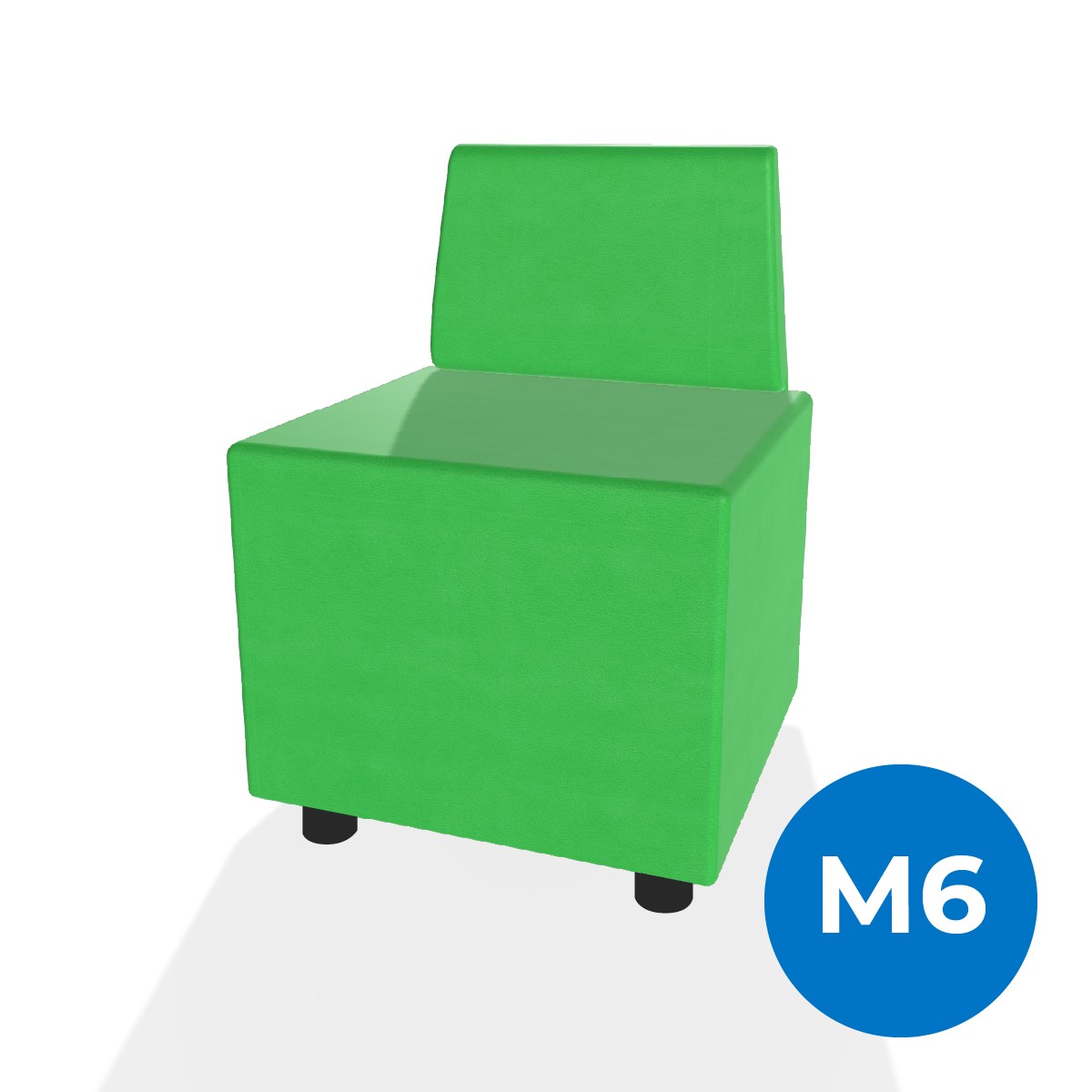 Pouf componibile di forma rettangolo stretto altezza M6 e schienale basso. Dimensioni: 48x51,5xH45,5cm, piedini alla base da 6cm, altezza schienale 74cm. Compatibile per sistema di aggancio unione elementi. Materiale: rivestimento sfoderabile, similpelle ignifuga classe 1 colore verde, struttura in legno, imbottitura in gomma. La caratteristica chiave di questa linea è la modularità assoluta. E’ possibile infatti creare illimitate combinazioni abbinando le diverse forme, al fine di dividere gli ambienti e arricchire gli spazi comuni. Prodotto pensato per gli spazi comuni quali atrii, corridoi ed altre aree di passaggio.