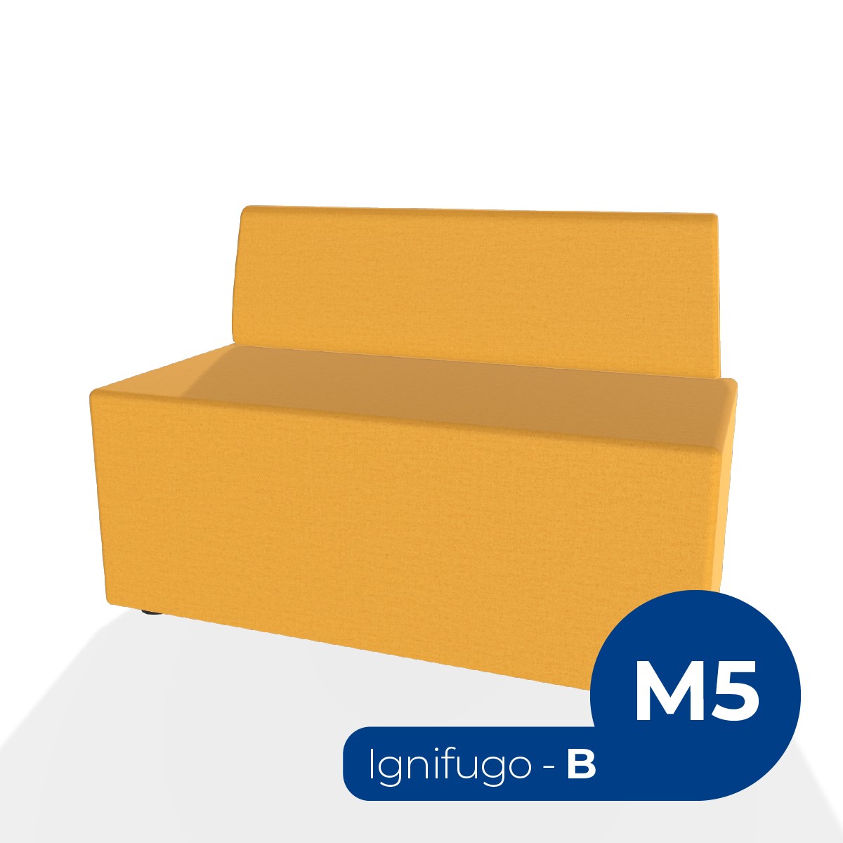 Pouf componibile di forma rettangolo stretto altezza M5 e schienale basso. Dimensioni: 103x48xH42cm, piedini alla base da 2,5 cm, altezza da terra 70,5cm, altezza seduta 42 cm. Compatibile per sistema di aggancio unione elementi. Materiale: rivestimento sfoderabile, tessuto ignifugo colore di tipo "B" giallo scuro, struttura in legno, imbottitura in gomma. La caratteristica chiave di questa linea è la modularità assoluta. E’ possibile infatti creare illimitate combinazioni abbinando le diverse forme, al fine di dividere gli ambienti e arricchire gli spazi comuni. Prodotto pensato per gli spazi comuni quali atrii, corridoi ed altre aree di passaggio. Prodotto consegnato montato.