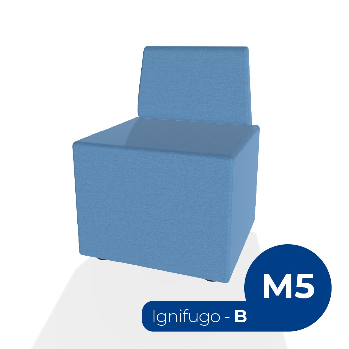 Pouf componibile di forma rettangolo stretto altezza M5 e schienale basso. Dimensioni: 48x51,5xH42cm, piedini alla base da 2,5 cm, altezza da terra 70,5cm. Compatibile per sistema di aggancio unione elementi. Materiale: rivestimento sfoderabile, tessuto ignifugo colore di tipo "B" azzurro avio, struttura in legno, imbottitura in gomma. La caratteristica chiave di questa linea è la modularità assoluta. E’ possibile infatti creare illimitate combinazioni abbinando le diverse forme, al fine di dividere gli ambienti e arricchire gli spazi comuni. Prodotto pensato per gli spazi comuni quali atrii, corridoi ed altre aree di passaggio.