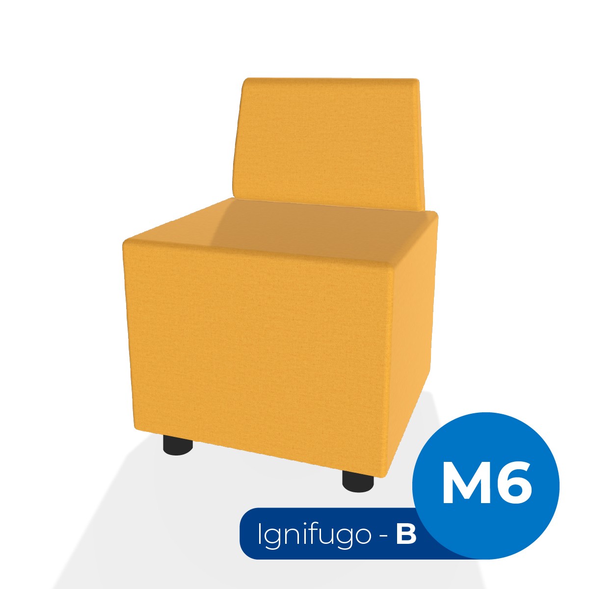 Pouf componibile di forma rettangolo stretto altezza M6 e schienale basso. Dimensioni: 48x51,5xH45,5cm piedini alla base da 6cm, altezza schienale 74cm. Compatibile per sistema di aggancio unione elementi. Materiale: rivestimento sfoderabile, tessuto ignifugo colore di tipo "B" giallo scuro, struttura in legno, imbottitura in gomma. La caratteristica chiave di questa linea è la modularità assoluta. E’ possibile infatti creare illimitate combinazioni abbinando le diverse forme, al fine di dividere gli ambienti e arricchire gli spazi comuni. Prodotto pensato per gli spazi comuni quali atrii, corridoi ed altre aree di passaggio.