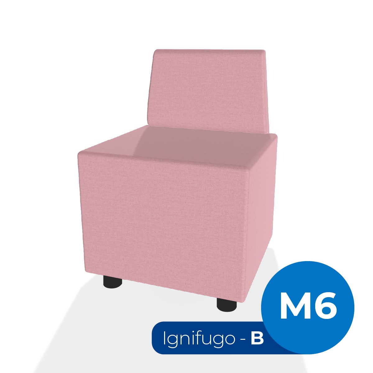 Pouf componibile di forma rettangolo stretto altezza M6 e schienale basso. Dimensioni: 48x51,5xH45,5cm piedini alla base da 6cm, altezza schienale 74cm. Compatibile per sistema di aggancio unione elementi. Materiale: rivestimento sfoderabile, tessuto ignifugo colore di tipo "B" rosa, struttura in legno, imbottitura in gomma. La caratteristica chiave di questa linea è la modularità assoluta. E’ possibile infatti creare illimitate combinazioni abbinando le diverse forme, al fine di dividere gli ambienti e arricchire gli spazi comuni. Prodotto pensato per gli spazi comuni quali atrii, corridoi ed altre aree di passaggio.