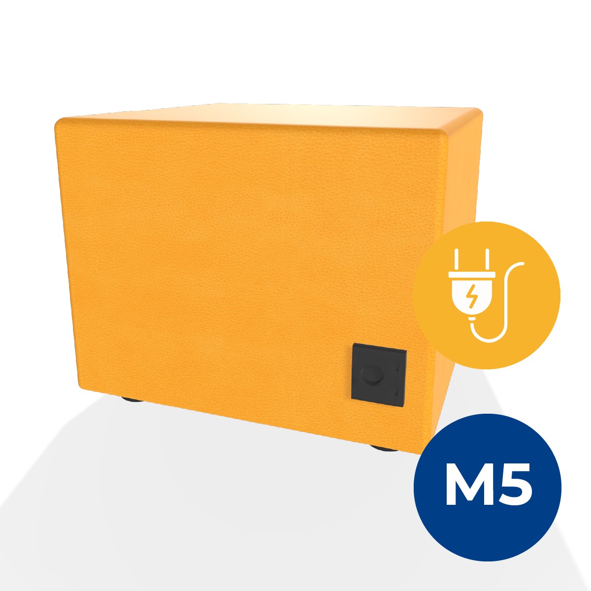 Pouf componibile di forma rettangolo stretto altezza M5, con una presa schuko e due prese usb - c. Dimensioni: 48x51,5xH42cm , piedini alla base da 2,5 cm. Compatibile per sistema di aggancio unione elementi. Materiale: rivestimento non sfoderabile, similpelle ignifuga classe 1 colore arancione, struttura in legno, imbottitura in gomma. La caratteristica chiave di questa linea è la modularità assoluta. E’ possibile infatti creare illimitate combinazioni abbinando le diverse forme, al fine di dividere gli ambienti e arricchire gli spazi comuni. Prodotto pensato per gli spazi comuni quali atrii, corridoi ed altre aree di passaggio.