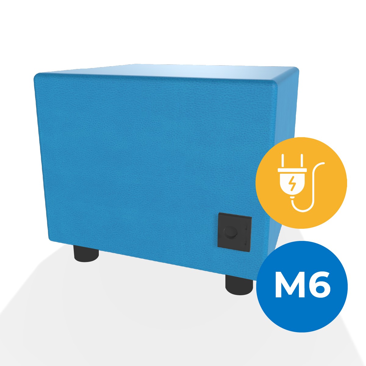 Pouf componibile di forma rettangolo stretto altezza M6, con una presa schuko e due prese usb - c. Dimensioni: 48x51,5xH45,5cm, piedini alla base da 6cm. Compatibile per sistema di aggancio unione elementi. Materiale: rivestimento non sfoderabile, similpelle ignifuga classe 1 colore azzurro, struttura in legno, imbottitura in gomma. La caratteristica chiave di questa linea è la modularità assoluta. E’ possibile infatti creare illimitate combinazioni abbinando le diverse forme, al fine di dividere gli ambienti e arricchire gli spazi comuni. Prodotto pensato per gli spazi comuni quali atrii, corridoi ed altre aree di passaggio.
