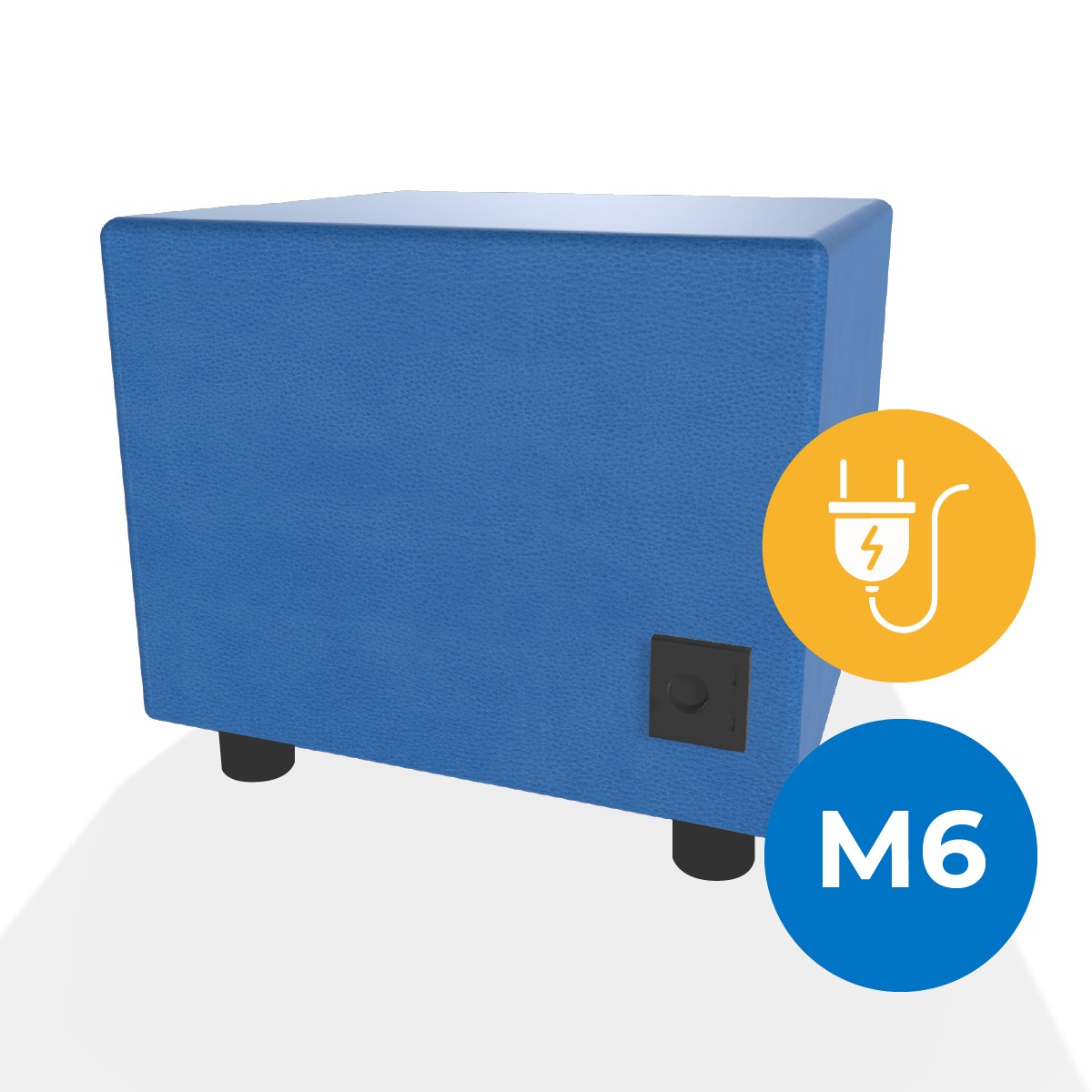 Pouf componibile di forma rettangolo stretto altezza M6, con una presa schuko e due prese usb - c. Dimensioni: 48x51,5xH45,5cm, piedini alla base da 6cm. Compatibile per sistema di aggancio unione elementi. Materiale: rivestimento non sfoderabile, similpelle ignifuga classe 1 colore blu scuro, struttura in legno, imbottitura in gomma. La caratteristica chiave di questa linea è la modularità assoluta. E’ possibile infatti creare illimitate combinazioni abbinando le diverse forme, al fine di dividere gli ambienti e arricchire gli spazi comuni. Prodotto pensato per gli spazi comuni quali atrii, corridoi ed altre aree di passaggio.