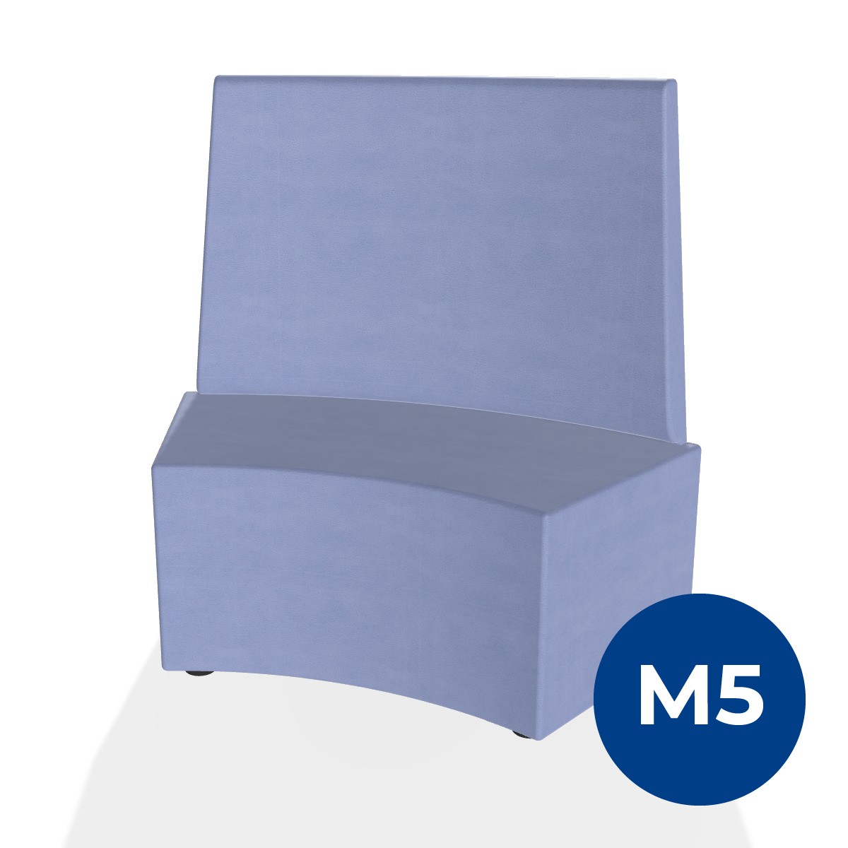 Pouf componibile di forma angolare altezza M5 e schienale alto. Dimensioni: profondità 48cm, raggio esterno 140cm, altezza da terra 106cm, altezza seduta 42cm, piedini alla base da 2,5 cm. Compatibile per sistema di aggancio unione elementi. Materiale: rivestimento sfoderabile, similpelle ignifuga classe 1 colore lilla, struttura in legno, imbottitura in gomma. La caratteristica chiave di questa linea è la modularità assoluta. E’ possibile infatti creare illimitate combinazioni abbinando le diverse forme, al fine di dividere gli ambienti e arricchire gli spazi comuni. Prodotto pensato per gli spazi comuni quali atrii, corridoi ed altre aree di passaggio.