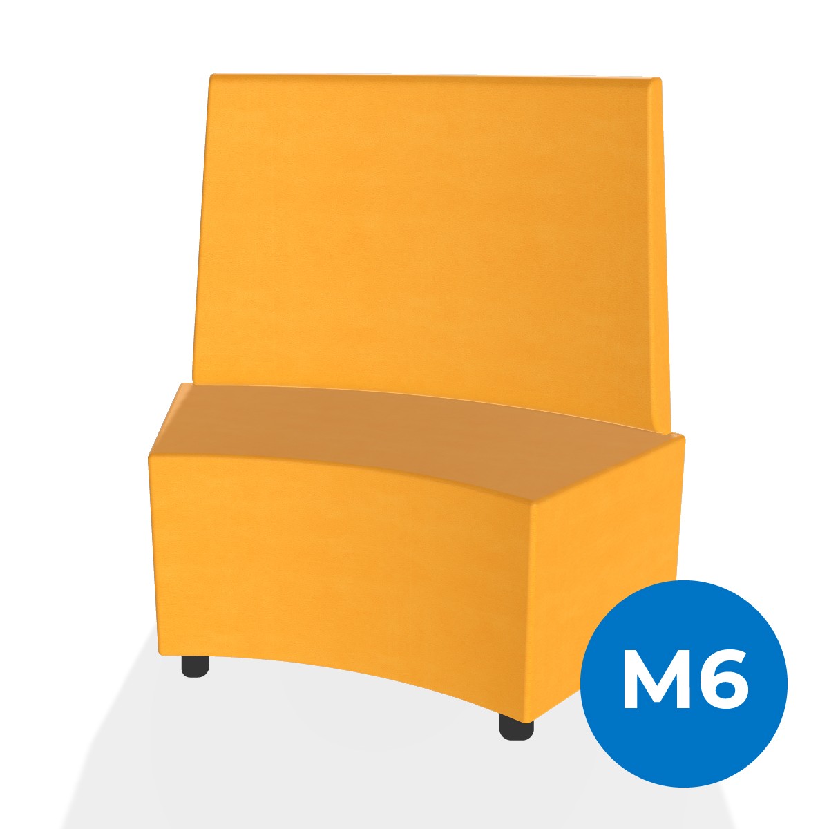 Pouf componibile di forma angolare altezza M6 e schienale alto. Dimensioni: profondità 48cm, raggio esterno 140cm, altezza da terra 109,5cm, altezza seduta 45,5cm, piedini alla base da 6 cm. Compatibile per sistema di aggancio unione elementi. Materiale: rivestimento sfoderabile, similpelle ignifuga classe 1 colore arancione, struttura in legno, imbottitura in gomma. La caratteristica chiave di questa linea è la modularità assoluta. E’ possibile infatti creare illimitate combinazioni abbinando le diverse forme, al fine di dividere gli ambienti e arricchire gli spazi comuni. Prodotto pensato per gli spazi comuni quali atrii, corridoi ed altre aree di passaggio.