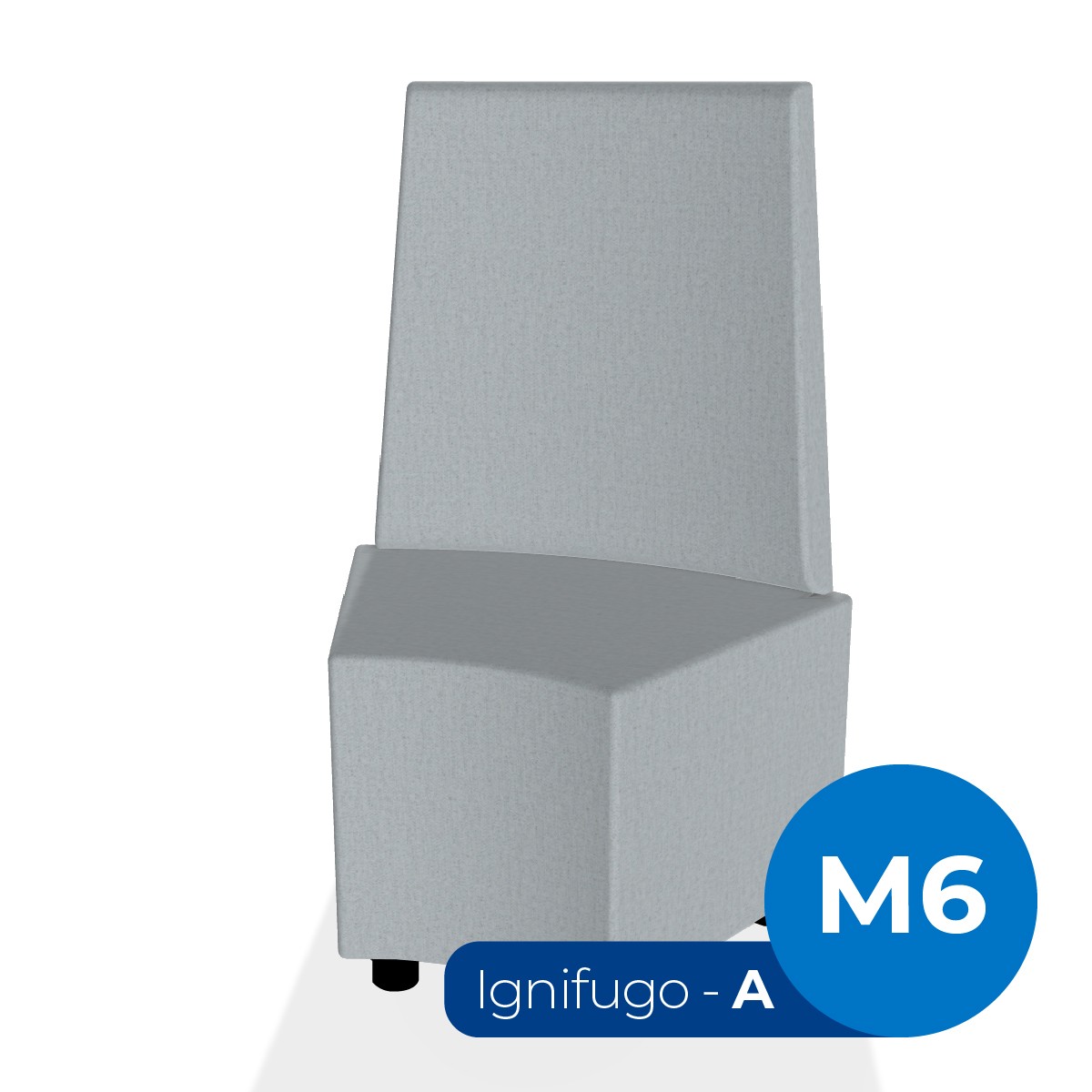 Pouf componibile di forma angolare altezza M6 e schienale alto. Dimensioni: profondità 48cm, raggio esterno 95 cm, altezza da terra 109,5cm, altezza seduta 45,5cm, piedini alla base da 6cm. Compatibile per sistema di aggancio unione elementi. Materiale: rivestimento sfoderabile, tessuto ignifugo colore di tipo "A" grigio, struttura in legno, imbottitura in gomma. La caratteristica chiave di questa linea è la modularità assoluta. E’ possibile infatti creare illimitate combinazioni abbinando le diverse forme dei moduli Flora, al fine di dividere gli ambienti e arricchire gli spazi comuni. Prodotto pensato per gli spazi comuni quali atrii, corridoi ed altre aree di passaggio.