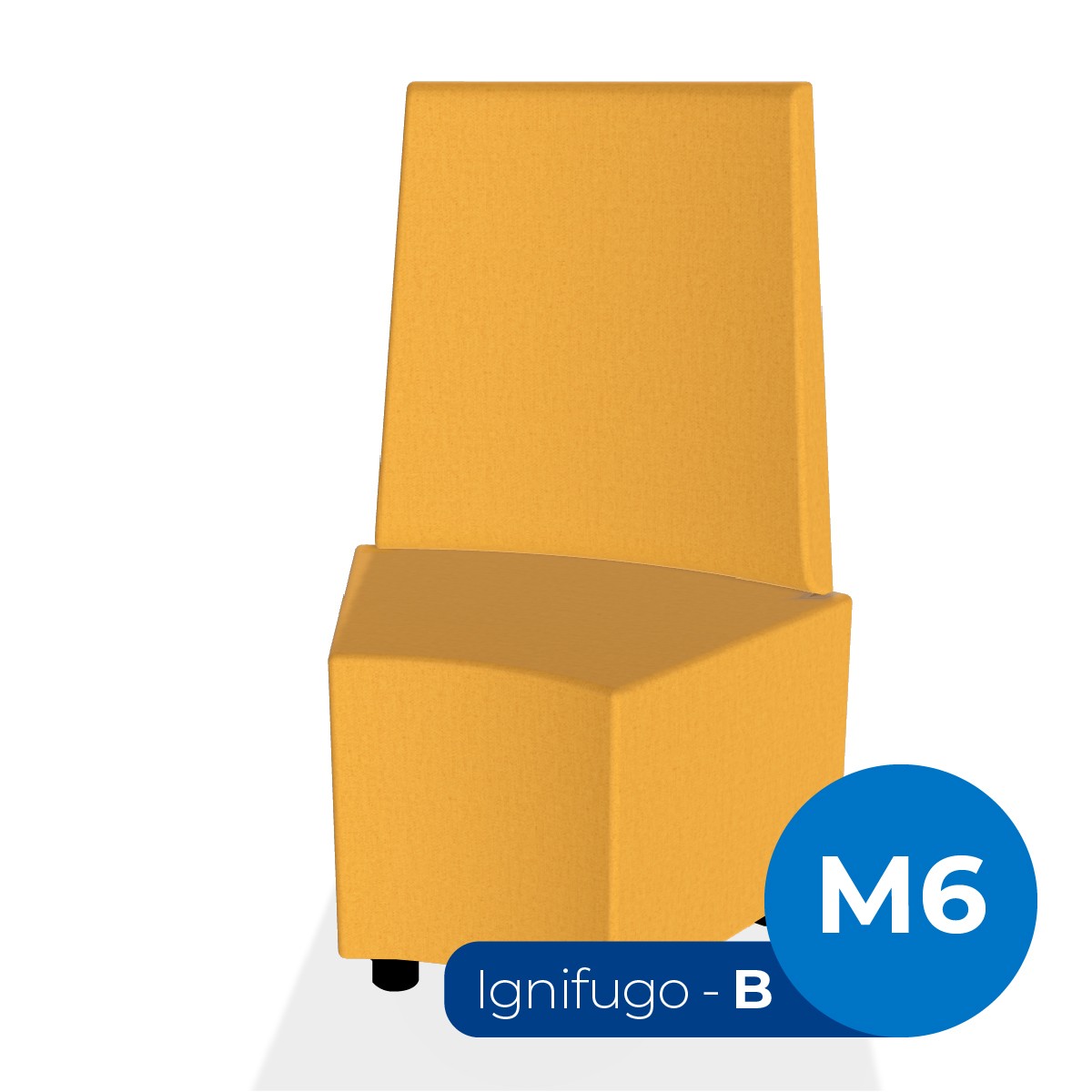 Pouf componibile di forma angolare altezza M6 e schienale alto. Dimensioni: profondità 48cm, raggio esterno 95 cm, altezza da terra 109,5cm, altezza seduta 45,5cm, piedini alla base da 6cm. Compatibile per sistema di aggancio unione elementi. Materiale: rivestimento sfoderabile, tessuto ignifugo colore di tipo "B" giallo scuro, struttura in legno, imbottitura in gomma. La caratteristica chiave di questa linea è la modularità assoluta. E’ possibile infatti creare illimitate combinazioni abbinando le diverse forme dei moduli Flora, al fine di dividere gli ambienti e arricchire gli spazi comuni. Prodotto pensato per gli spazi comuni quali atrii, corridoi ed altre aree di passaggio.