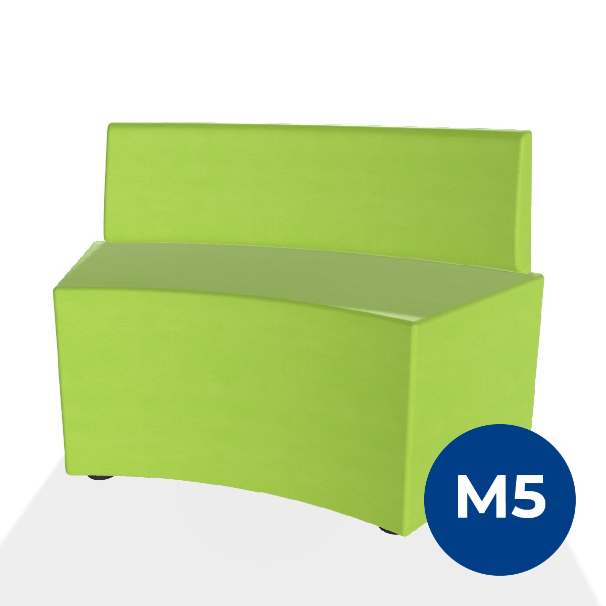 Pouf componibile di forma angolare altezza M5 e schienale basso. Dimensioni: profondità 48cm, raggio esterno 140cm, altezza da terra 70,5 cm, altezza seduta 42cm, piedini alla base da 2,5 cm. Compatibile per sistema di aggancio unione elementi. Materiale: rivestimento sfoderabile, similpelle ignifuga classe 1 colore verde chiaro, struttura in legno, imbottitura in gomma. La caratteristica chiave di questa linea è la modularità assoluta. E’ possibile infatti creare illimitate combinazioni abbinando le diverse forme, al fine di dividere gli ambienti e arricchire gli spazi comuni. Prodotto pensato per gli spazi comuni quali atrii, corridoi ed altre aree di passaggio.