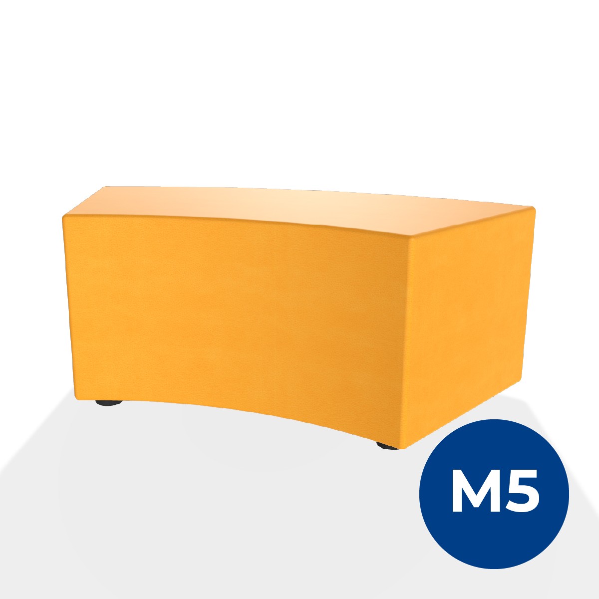 Pouf componibile di forma angolare altezza M5. Dimensioni: profondità 48cm, raggio esterno 140cm, altezza 42cm, piedini alla base da 2,5 cm. Compatibile per sistema di aggancio unione elementi. Materiale: rivestimento sfoderabile, similpelle ignifuga classe 1 colore arancione, struttura in legno, imbottitura in gomma. La caratteristica chiave di questa linea è la modularità assoluta. E’ possibile infatti creare illimitate combinazioni abbinando le diverse forme, al fine di dividere gli ambienti e arricchire gli spazi comuni. Prodotto pensato per gli spazi comuni quali atrii, corridoi ed altre aree di passaggio.