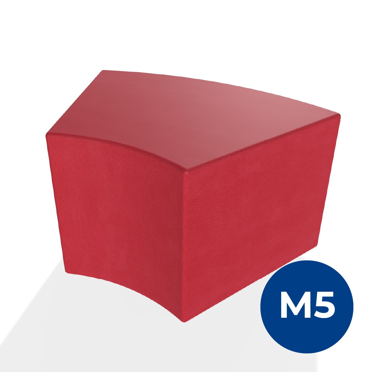 Pouf componibile di forma angolare altezza M5. Dimensioni: profondità 48cm, raggio esterno 95cm, altezza 42cm, piedini alla base da 2,5 cm. Compatibile per sistema di aggancio unione elementi. Materiale: rivestimento sfoderabile, similpelle ignifuga classe 1 colore rosso, struttura in legno, imbottitura in gomma. La caratteristica chiave di questa linea è la modularità assoluta. E’ possibile infatti creare illimitate combinazioni abbinando le diverse forme, al fine di dividere gli ambienti e arricchire gli spazi comuni. Prodotto pensato per gli spazi comuni quali atrii, corridoi ed altre aree di passaggio.