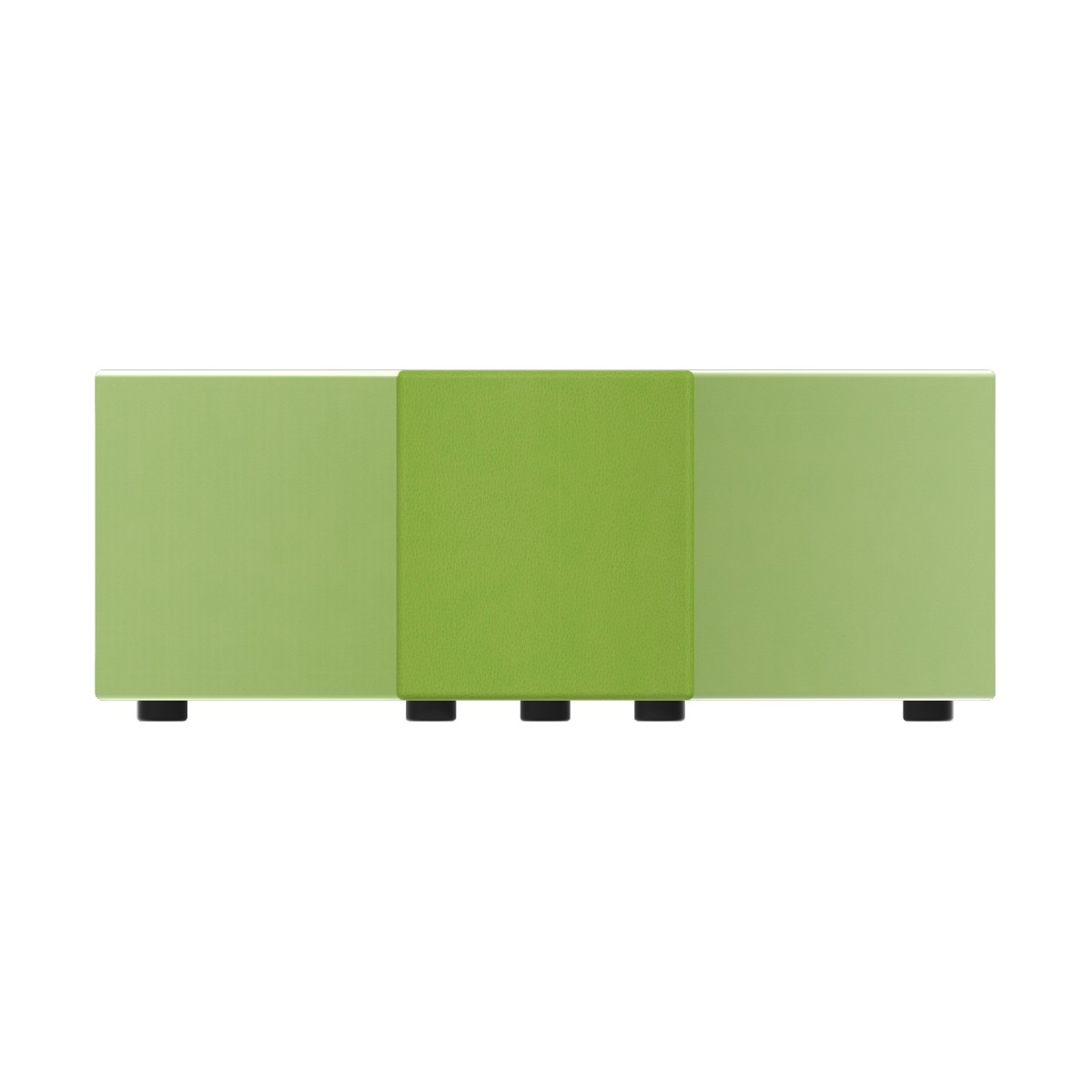 Pouf componibile di forma angolare altezza M5. Dimensioni: profondità 96cm altezza 42cm, piedini alla base da 2,5 cm. Compatibile per sistema di aggancio unione elementi. Materiale: rivestimento sfoderabile, similpelle ignifuga classe 1 colore verde chiaro, struttura in legno, imbottitura in gomma. La caratteristica chiave di questa linea è la modularità assoluta. E’ possibile infatti creare illimitate combinazioni abbinando le diverse forme, al fine di dividere gli ambienti e arricchire gli spazi comuni. Prodotto pensato per gli spazi comuni quali atrii, corridoi ed altre aree di passaggio.