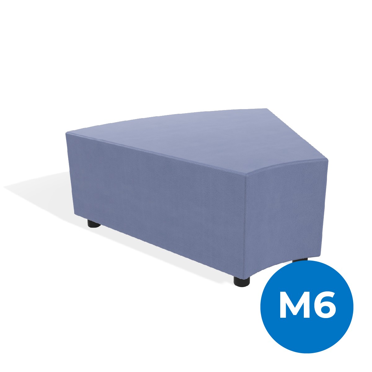 Pouf componibile di forma angolare altezza M6. Dimensioni: profondità 96cm altezza 45,5cm, piedini alla base da 6cm. Compatibile per sistema di aggancio unione elementi. Materiale: rivestimento sfoderabile, similpelle ignifuga classe 1 colore lilla, struttura in legno, imbottitura in gomma. La caratteristica chiave di questa linea è la modularità assoluta. E’ possibile infatti creare illimitate combinazioni abbinando le diverse forme, al fine di dividere gli ambienti e arricchire gli spazi comuni. Prodotto pensato per gli spazi comuni quali atrii, corridoi ed altre aree di passaggio.
