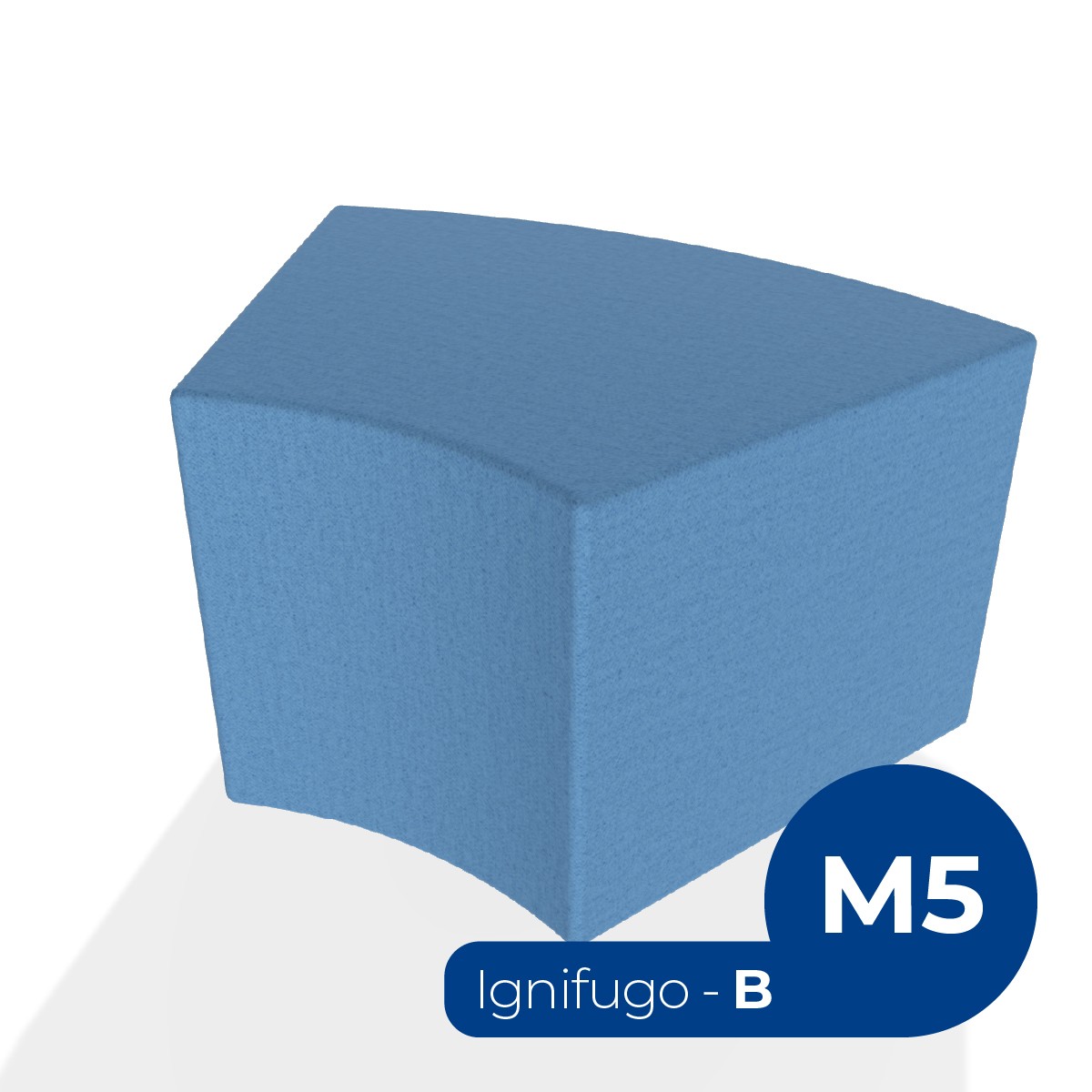 Pouf componibile di forma angolare altezza M5. Dimensioni: profondità 48cm, raggio esterno 95cm, altezza 42cm, piedini alla base da 2,5 cm. Compatibile per sistema di aggancio unione elementi. Materiale: rivestimento sfoderabile, tessuto ignifugo colore di tipo "B" azzurro avio, struttura in legno, imbottitura in gomma. La caratteristica chiave di questa linea è la modularità assoluta. E’ possibile infatti creare illimitate combinazioni abbinando le diverse forme, al fine di dividere gli ambienti e arricchire gli spazi comuni. Prodotto pensato per gli spazi comuni quali atrii, corridoi ed altre aree di passaggio.