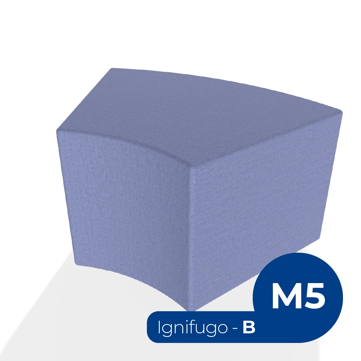 Pouf componibile di forma angolare altezza M5. Dimensioni: profondità 48cm, raggio esterno 95cm, altezza 42cm, piedini alla base da 2,5 cm. Compatibile per sistema di aggancio unione elementi. Materiale: rivestimento sfoderabile, tessuto ignifugo colore di tipo "B" lilla, struttura in legno, imbottitura in gomma. La caratteristica chiave di questa linea è la modularità assoluta. E’ possibile infatti creare illimitate combinazioni abbinando le diverse forme, al fine di dividere gli ambienti e arricchire gli spazi comuni. Prodotto pensato per gli spazi comuni quali atrii, corridoi ed altre aree di passaggio.