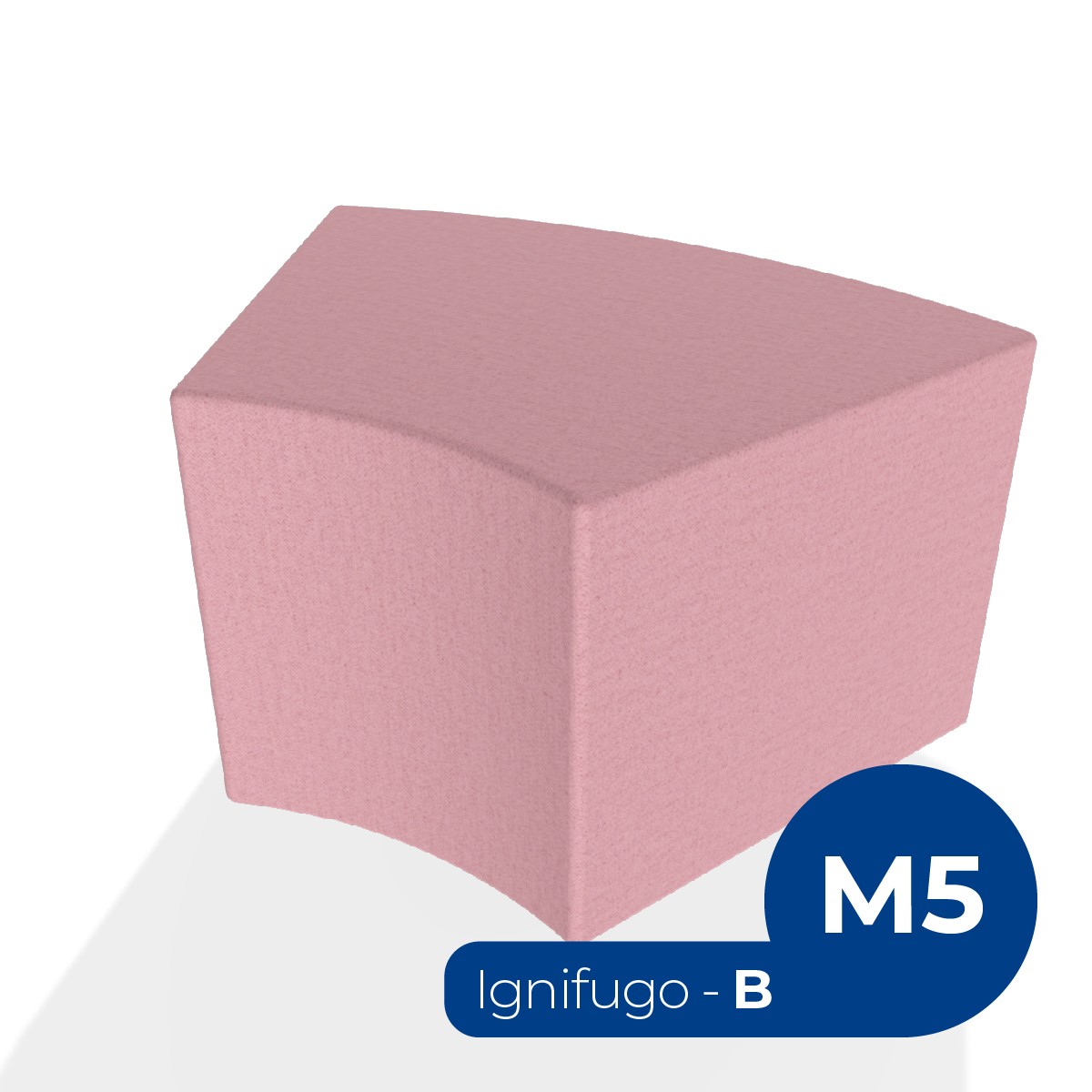 Pouf componibile di forma angolare altezza M5. Dimensioni: profondità 48cm, raggio esterno 95cm, altezza 42cm, piedini alla base da 2,5 cm. Compatibile per sistema di aggancio unione elementi. Materiale: rivestimento sfoderabile, tessuto ignifugo colore di tipo "B" rosa, struttura in legno, imbottitura in gomma. La caratteristica chiave di questa linea è la modularità assoluta. E’ possibile infatti creare illimitate combinazioni abbinando le diverse forme, al fine di dividere gli ambienti e arricchire gli spazi comuni. Prodotto pensato per gli spazi comuni quali atrii, corridoi ed altre aree di passaggio.