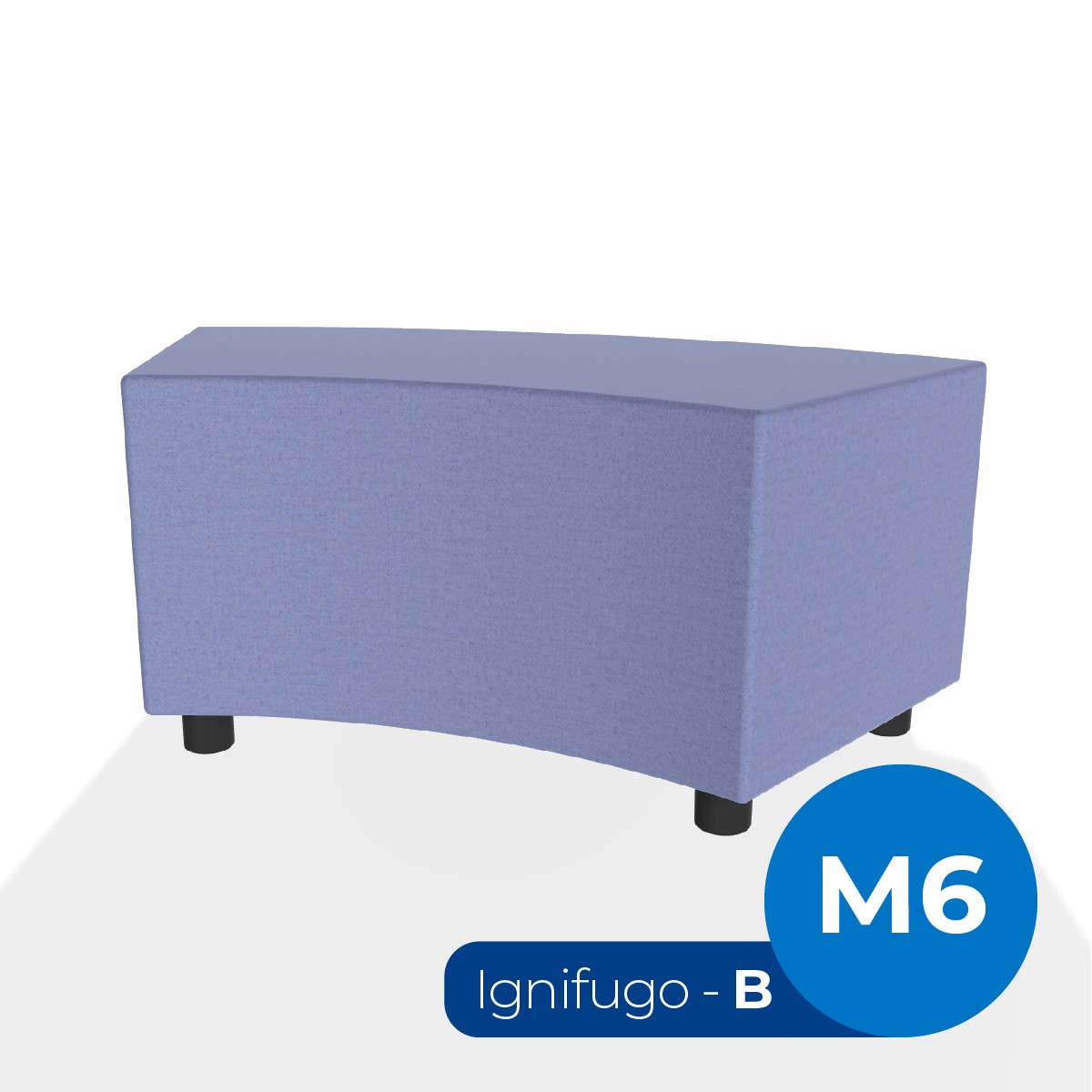 Pouf componibile di forma angolare altezza M6. Dimensioni: profondità 48cm, raggio esterno 140cm, altezza 45,5cm, piedini alla base da 6 cm. Compatibile per sistema di aggancio unione elementi. Materiale: rivestimento sfoderabile, tessuto ignifugo colore di tipo "B" lilla, struttura in legno, imbottitura in gomma. La caratteristica chiave di questa linea è la modularità assoluta. E’ possibile infatti creare illimitate combinazioni abbinando le diverse forme, al fine di dividere gli ambienti e arricchire gli spazi comuni. Prodotto pensato per gli spazi comuni quali atrii, corridoi ed altre aree di passaggio.