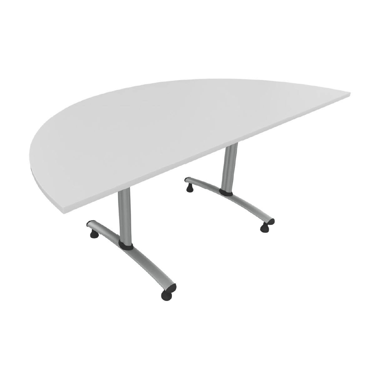 Tavolo di forma semicircolare con piano fisso e gambe altezza M5 con piedini. Dimensioni mezzocerchio Raggio 90cm Materiale: piano in truciolare FSC Mix spessore 22mm rivestito in melamina bianca con bordo spessore 2mm, gambe in metallo verniciato colore grigio. Il prodotto è aggregabile: il piano è predisposto per il montaggio di 4 ganci sugli spigoli al fine di unire i tavoli tra loro. Prodotto consegnato da montare, dotato di documentazione e conforme ai Criteri Ambientali Minimi DM 23 Giugno 2022 n.254