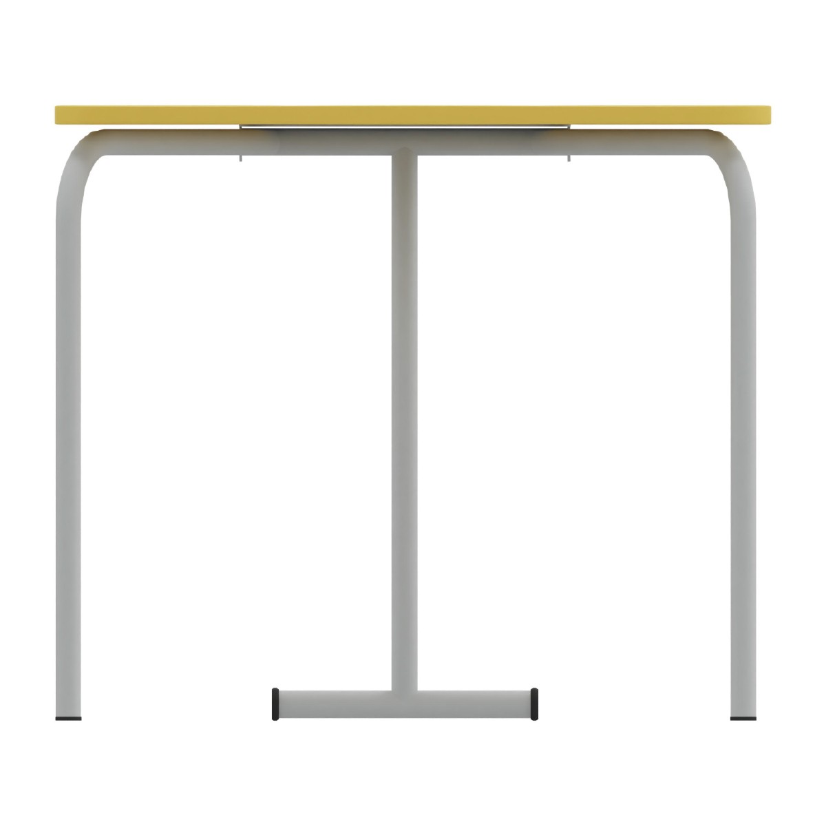 Tavolo di forma trapezoidale, spicchio di un cerchio da 6tavoli del diametro di 1,76mt . Dimensioni: 83x55,5cm, altezza da 72cm. Materiale: piano in truciolare FSC Mix spessore 22mm rivestito in melamina giallo con bordo spessore 2mm colore giallo, gambe in metallo verniciato colore grigio. Il prodotto è aggregabile. Certificato secondo la norma EN 1729/1 e EN 1729/2. Prodotto consegnato da montare, le gambe si agganciano al piano mediante 6 viti.