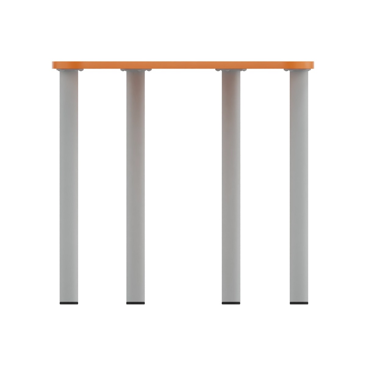 Tavolo di forma trapezoidale con gambe altezza variabile con piedini fissi. Dimensioni: 75,5x58,5cm, altezza 71cm. Materiale: piano in truciolare FSC Mix spessore 22mm rivestito in melamina arancione con bordo spessore 2mm colore arancione, gambe in metallo verniciato colore grigio. Il prodotto è aggregabile. Il piano è predisposto per il montaggio di 2 ganci, uno sul lato sinistro ed uno sul lato destro al fine di unire i tavoli tra loro, sia affiancati orizzontalmente, sia quando uniti a gruppi da 6. Certificato secondo la norma EN 1719/1 e EN 1719/2. Prodotto consegnato da montare, le gambe si agganciano al piano mediante 6viti.