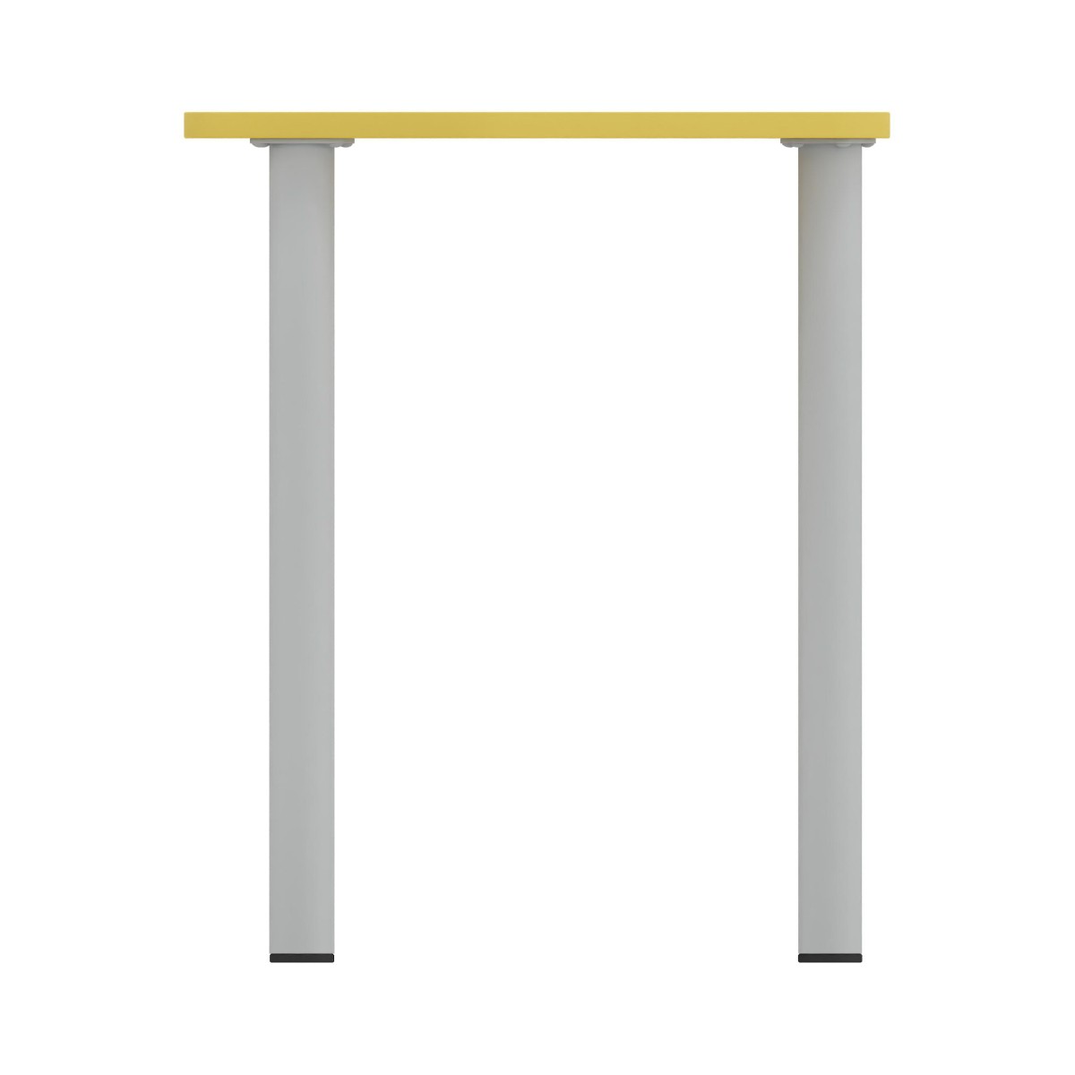 Tavolo di forma trapezoidale con gambe altezza variabile con piedini fissi. Dimensioni: 75,5x58,5cm, altezza 71cm. Materiale: piano in truciolare FSC Mix spessore 22mm rivestito in melamina giallo con bordo spessore 2mm colore giallo, gambe in metallo verniciato colore grigio. Il prodotto è aggregabile. Il piano è predisposto per il montaggio di 2 ganci, uno sul lato sinistro ed uno sul lato destro al fine di unire i tavoli tra loro, sia affiancati orizzontalmente, sia quando uniti a gruppi da 6. Certificato secondo la norma EN 1729/1 e EN 1729/2. Prodotto consegnato da montare, le gambe si agganciano al piano mediante 6viti.
