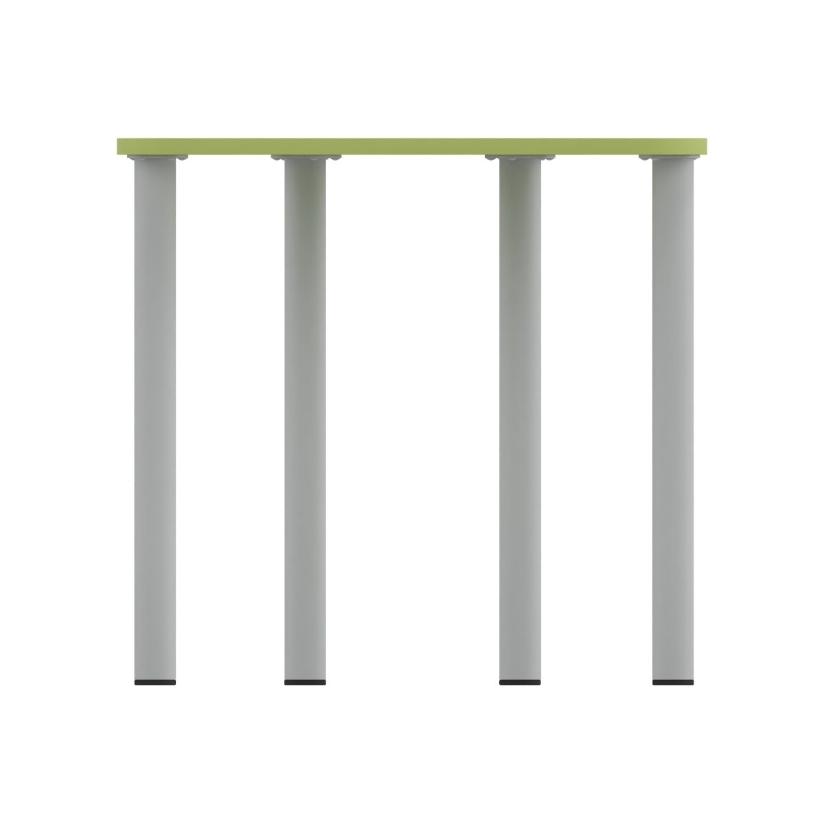 Tavolo di forma trapezoidale con gambe altezza variabile con piedini fissi. Dimensioni: 75,5x58,5cm, altezza 71cm. Materiale: piano in truciolare FSC Mix spessore 22mm rivestito in melamina verde con bordo spessore 2mm colore verde, gambe in metallo verniciato colore grigio. Il prodotto è aggregabile. Il piano è predisposto per il montaggio di 2 ganci, uno sul lato sinistro ed uno sul lato destro al fine di unire i tavoli tra loro, sia affiancati orizzontalmente, sia quando uniti a gruppi da 6. Certificato secondo la norma EN 1729/1 e EN 1729/2. Prodotto consegnato da montare, le gambe si agganciano al piano mediante 6viti.