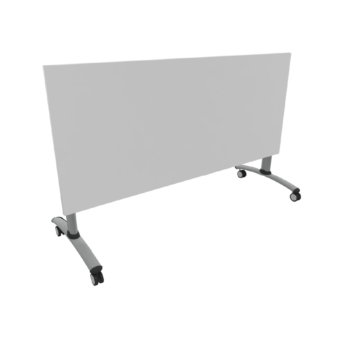 Tavolo di forma rettangolare con piano ribaltabile e gambe altezza M5 con ruote. Dimensioni: 180x70cm Materiale: piano in truciolare FSC Mix spessore 22mm rivestito in melamina bianca con bordo spessore 2mm, gambe in metallo verniciato colore grigio. Il prodotto è aggregabile: il piano è predisposto per il montaggio di 4 ganci sugli spigoli al fine di unire i tavoli tra loro. Prodotto consegnato da montare, dotato di documentazione e conforme ai Criteri Ambientali Minimi DM 23 Giugno 2022 n.254