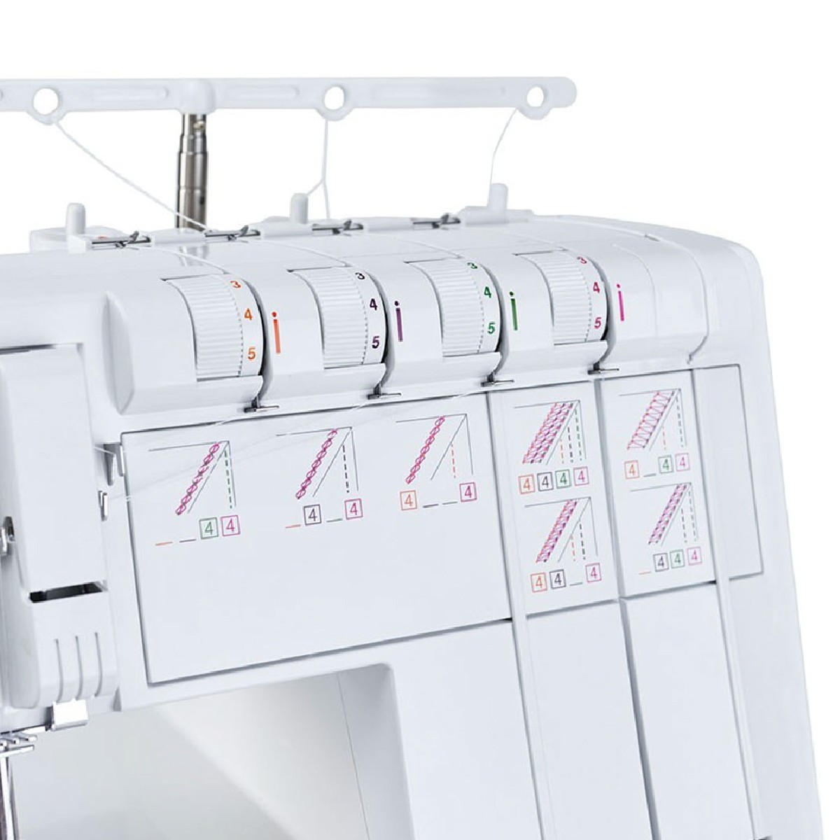 La macchina Punto Copertura 2/3/4 Fili è dotata di velocità e cucitura 1200 PPM, ideale per lavorazioni di alta precisione. Offre punti stretch, largo e triplocatella, garantendo versatilità e qualità. La luce LED e il regolatore di pressione del piedino assicurano facilità d'uso e risultati impeccabili.