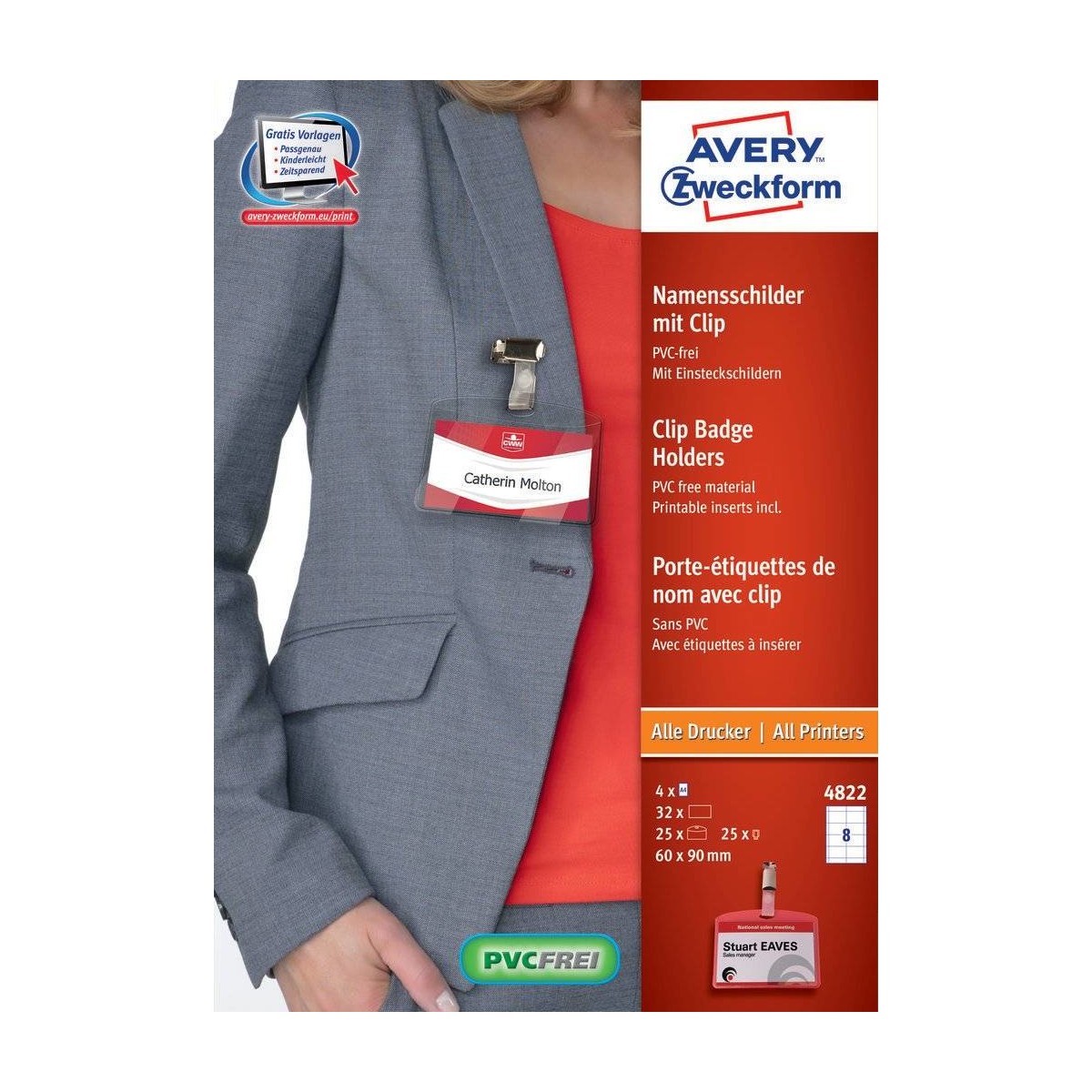 Avery 4822. Colore del prodotto: Trasparente, Bianco, Forma: Rettangolo, Materiali: Carta, Plastica. Larghezza dell'etichetta: 9 cm, Altezza dell'etichetta: 6 cm. Etichette da pacchi: 32 pz, Etichette per foglio: 8 pz, Etichette per rotolo: 4 pz