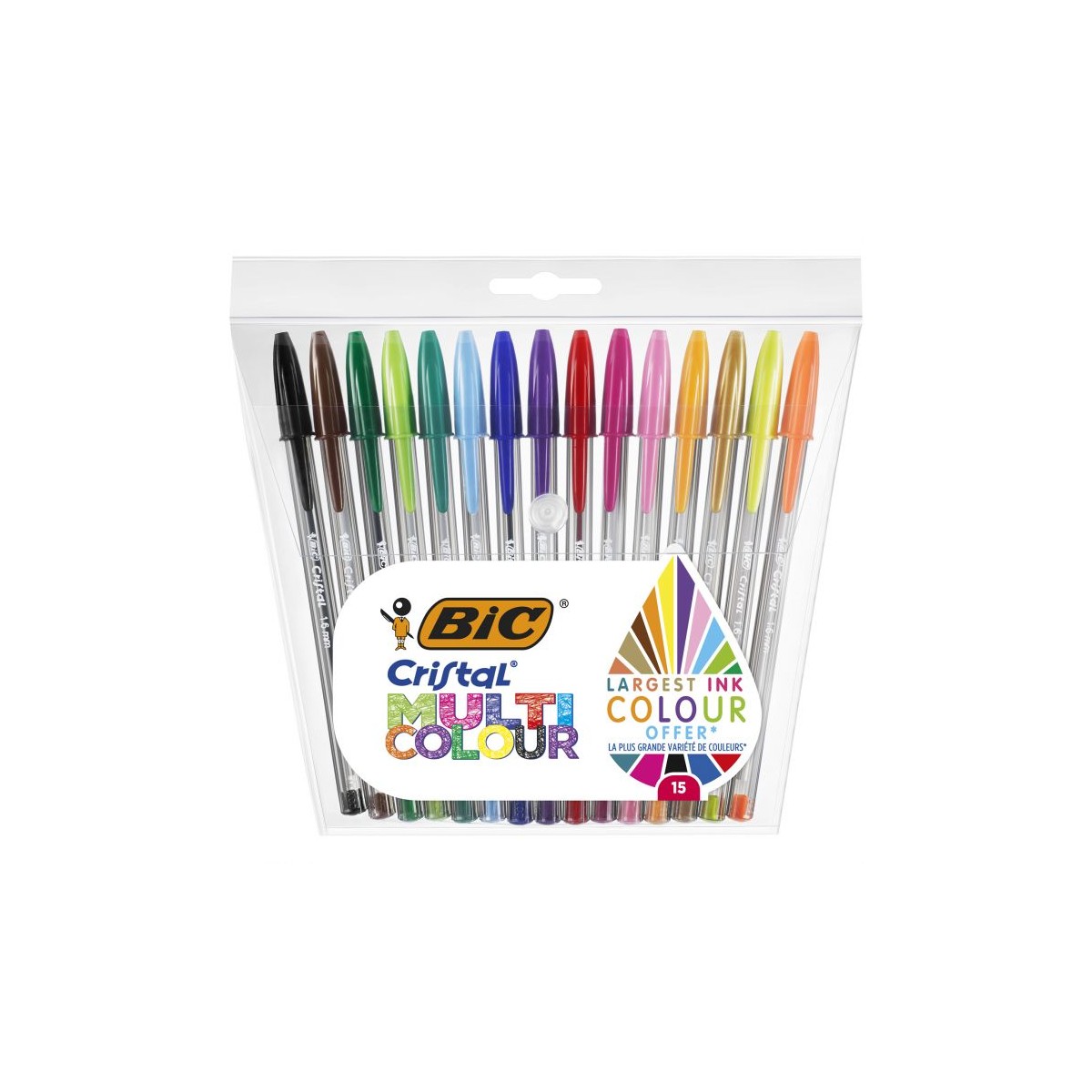BIC Cristal Multicolour. Colore del prodotto: Multicolore, Tipo: Penna a sfera, Ampiezza della punta: 1,6 mm. Quantità per pacco: 15 pz, Tipo di imballo: Blister