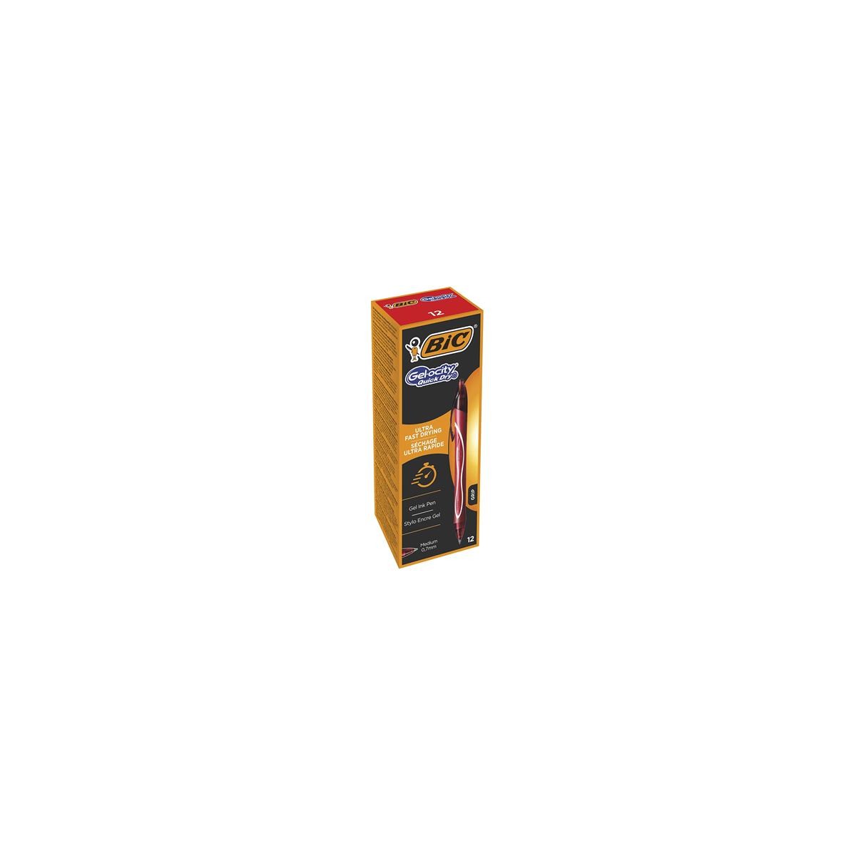 BIC Gel-ocity Quick Dry. Colore del prodotto: Rosso, Trasparente, Colore penna: Rosso, Tipo: Penna a sfera retrattile a clip. Quantità per pacco: 12 pz, Tipo di imballo: Scatola