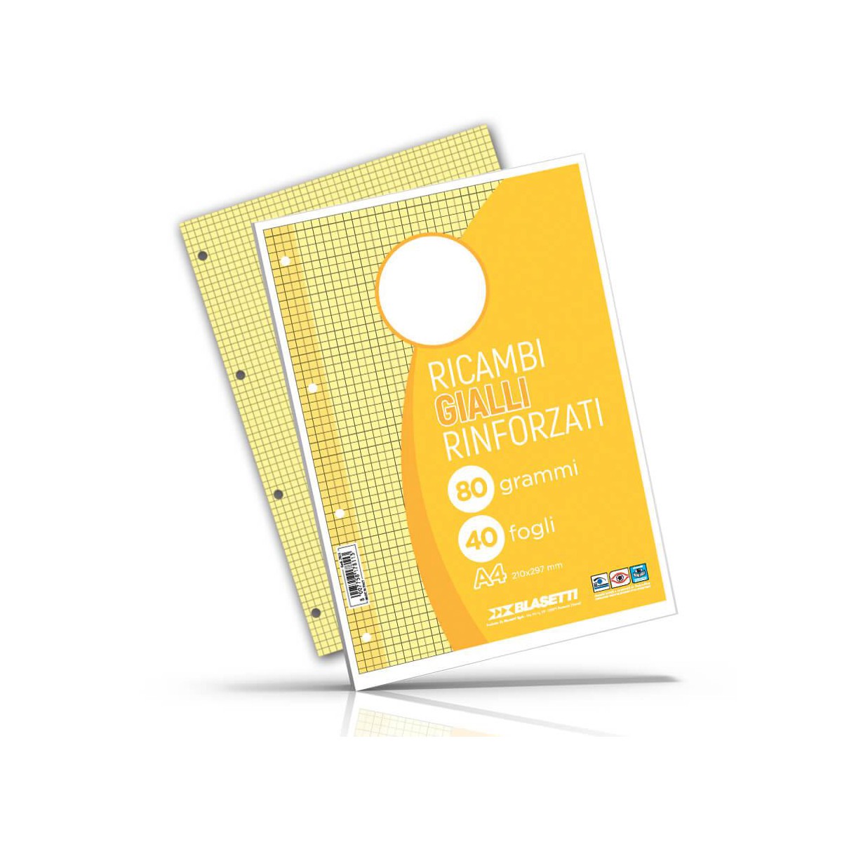 Blasetti 7812. Formato: 210 x 297 mm (A4), Peso medio: 80 g/m², Colore: Giallo. Fogli per pacco: 40 fogli