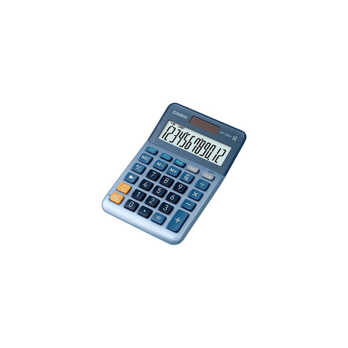 Casio MS-120EM. Fattore di forma: Desktop, Tipo: Calcolatrice con display. Cifre: 12 cifre, Display inclinabile. Alimentazione: Batteria/Solare. Colore del prodotto: Blu