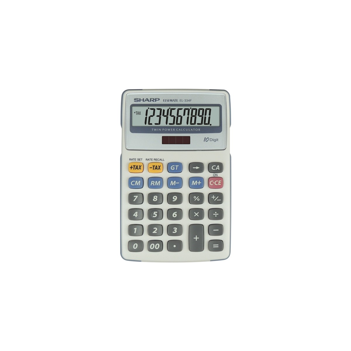Sharp EL-334F. Fattore di forma: Desktop, Tipo: Calcolatrice finanziaria. Cifre: 10 cifre, Righe di testo: 1 linee, Mostra numero di caratteri: 10. Calcolatore tasse. Alimentazione: Batteria/Solare. Colore del prodotto: Grigio