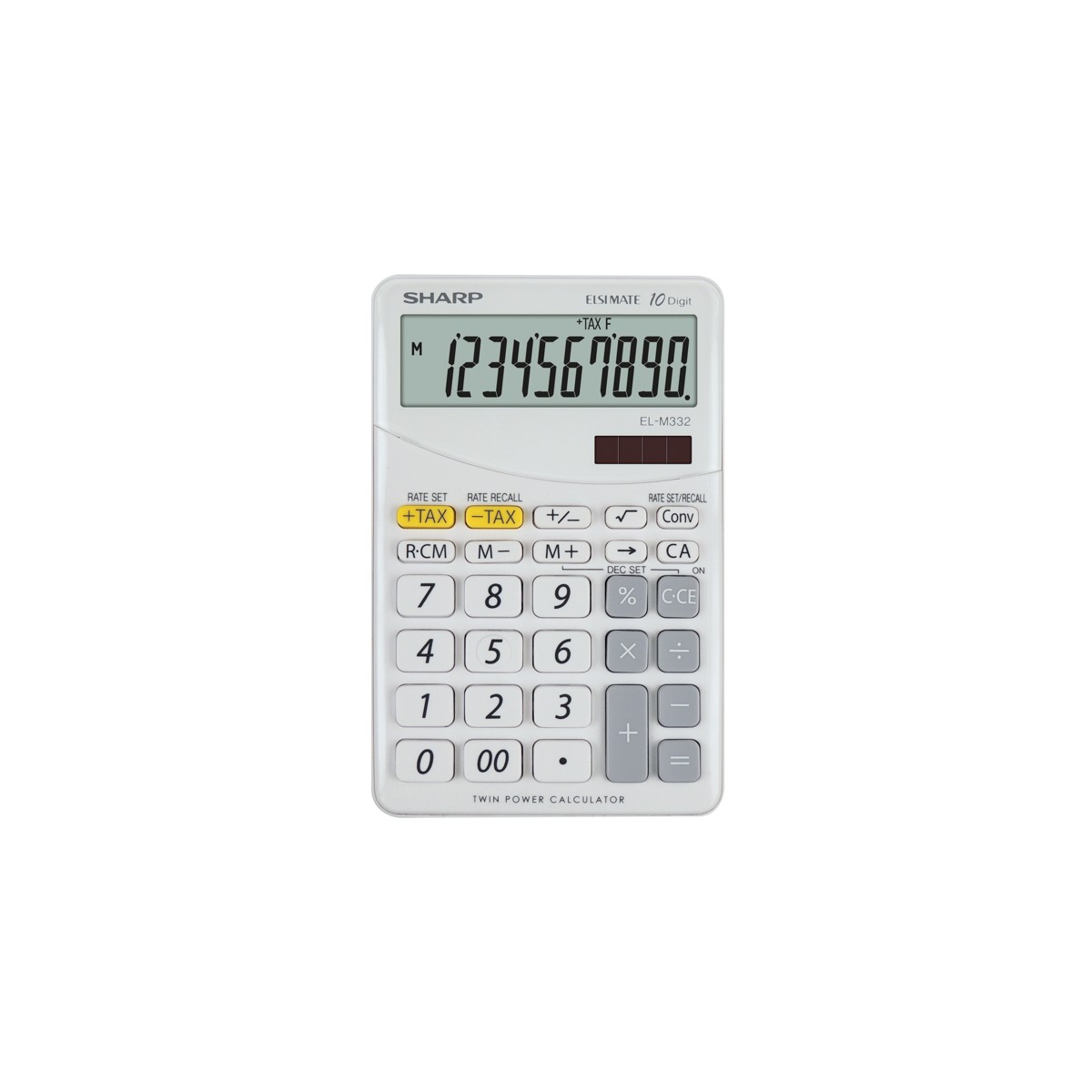 Sharp EL-M332. Fattore di forma: Desktop, Tipo: Calcolatrice finanziaria. Cifre: 10 cifre, Righe di testo: 1 linee. Convertitore di valute. Alimentazione: Batteria/Solare. Colore del prodotto: Bianco